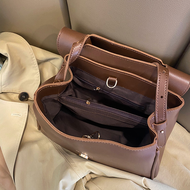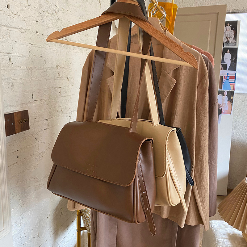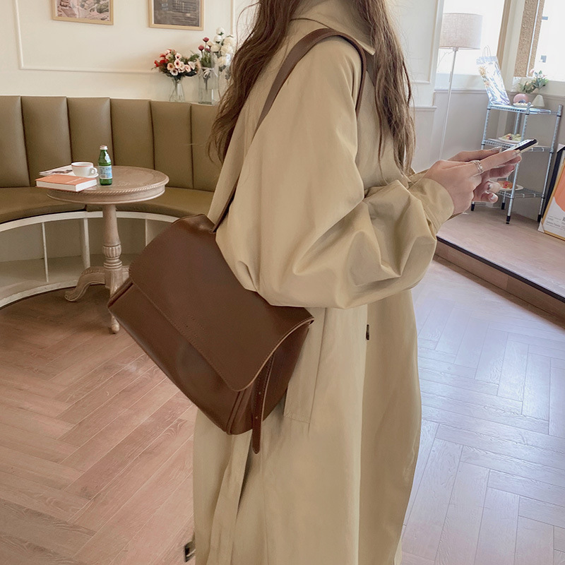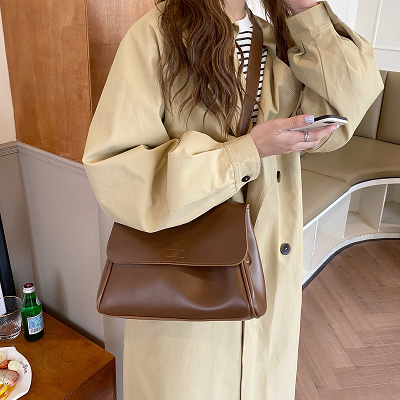 해외 무역 크로스보더 다크브라운 한국 신상 2026 봄 플립백 가방, 여성용 PU 가죽 숄더/크로스백, 세련된 출퇴근룩, 트렌디스토어 가기