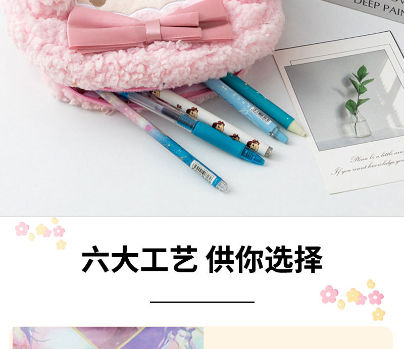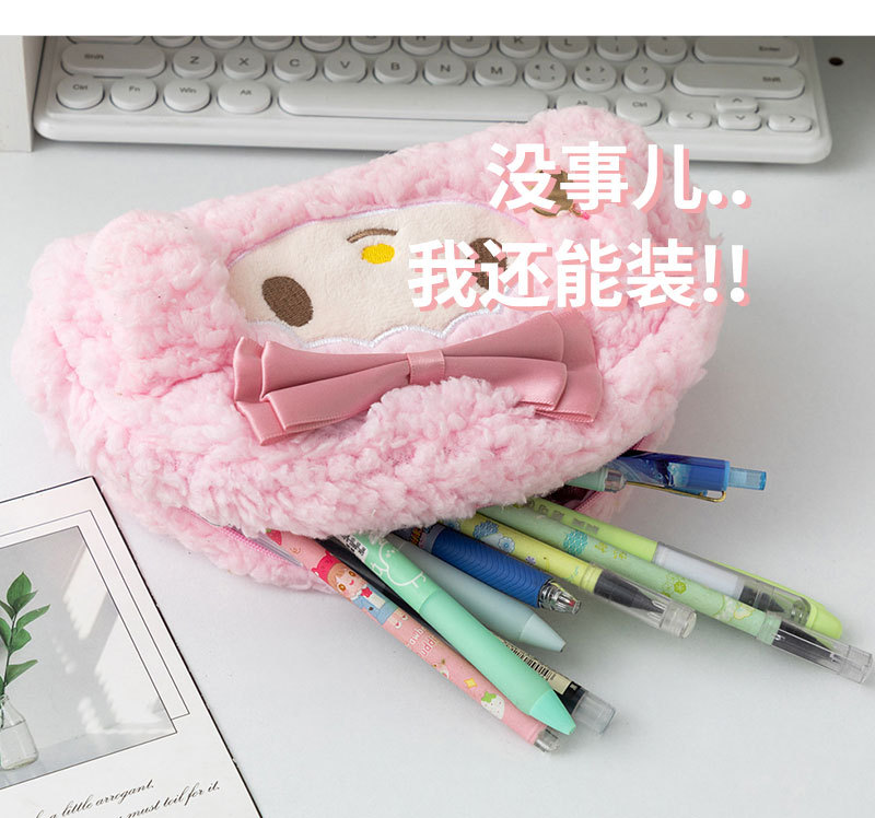 핑크색 봉제 양돌이 학생 필통 소녀용 귀여운 만화 캐릭터 대용량 문구 가방 멜로디 핑크색 화장품 가방스토어 가기