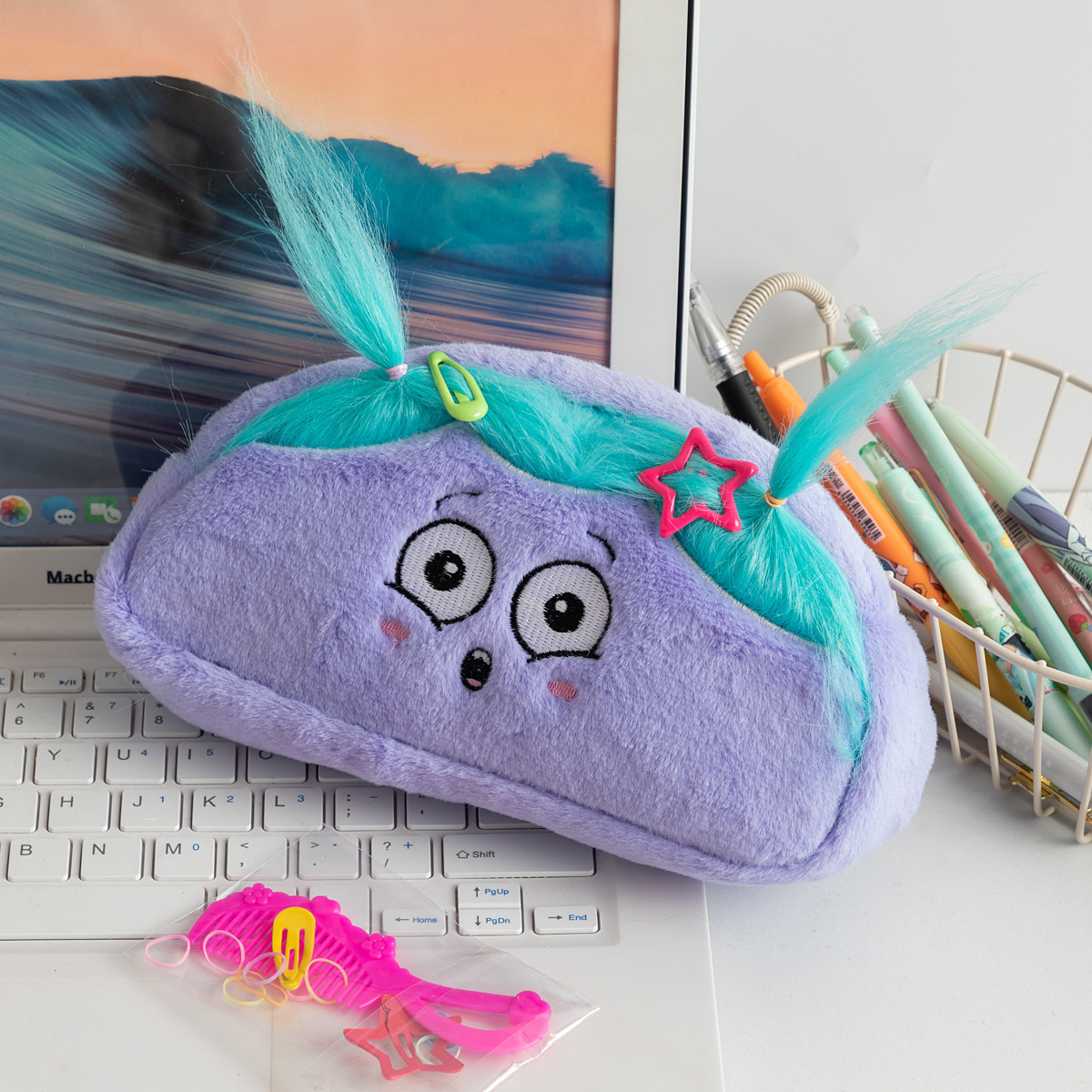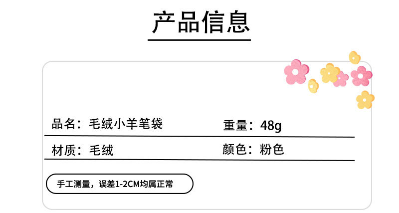 핑크색 봉제 양돌이 학생 필통 소녀용 귀여운 만화 캐릭터 대용량 문구 가방 멜로디 핑크색 화장품 가방
