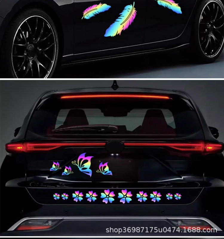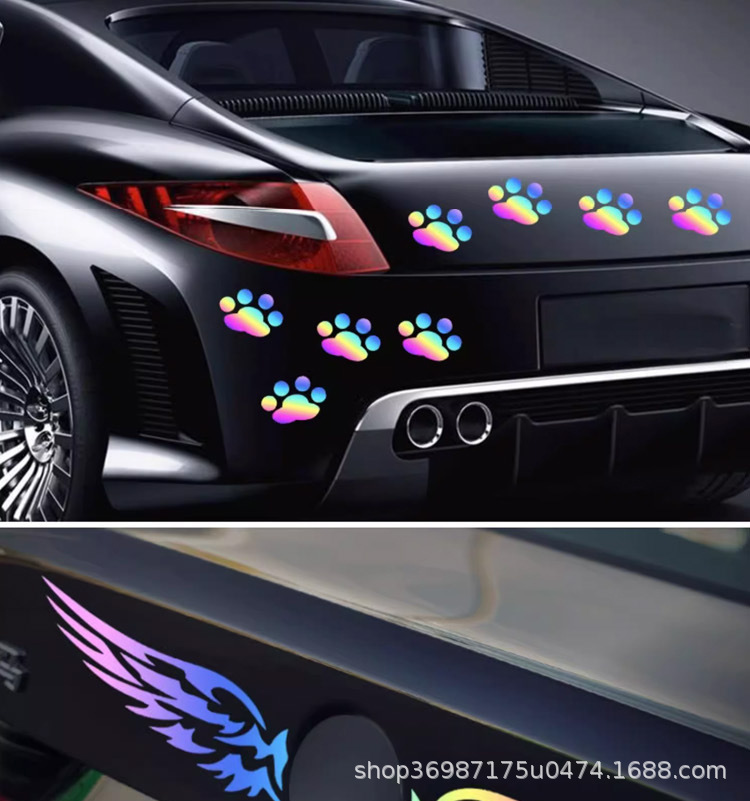다채로운 레이저 자동차 스티커 차단기 스크래치 전기 자동차 스티커 그림 오토바이 꼬리 상자 데칼 방수 태양 보호스토어 가기