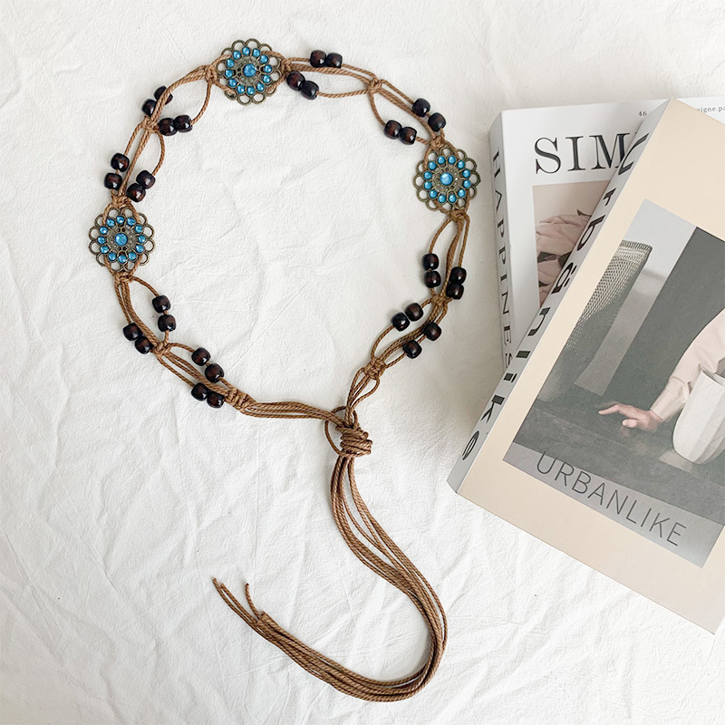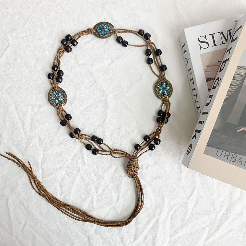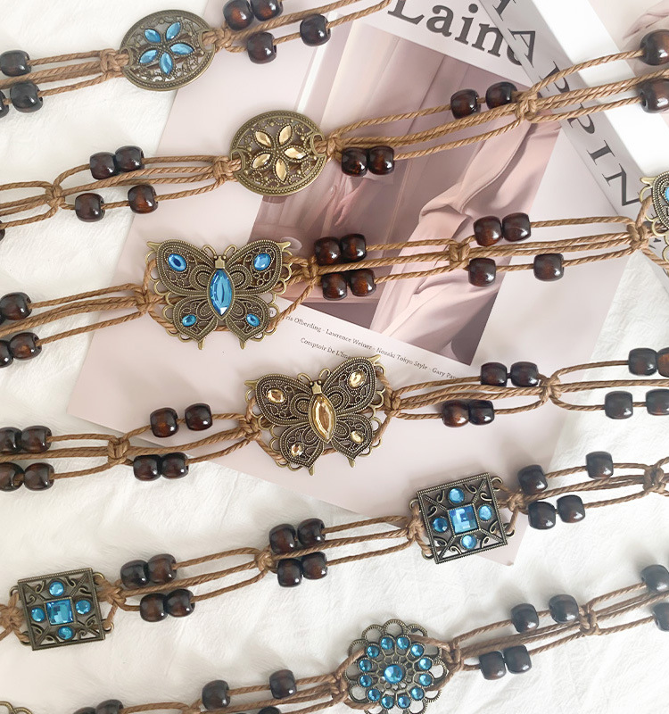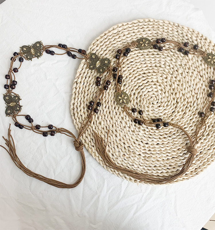 보헤미안 빈티지 민족 스타일 수제 짠 벨트 여성 올매치 독특한 원피스 장식 나비 허리 체인