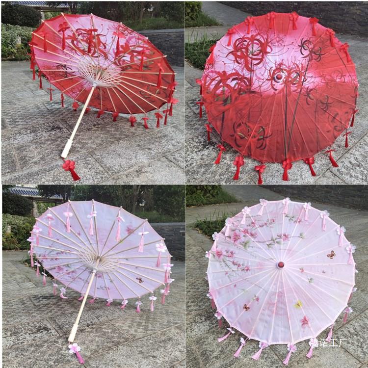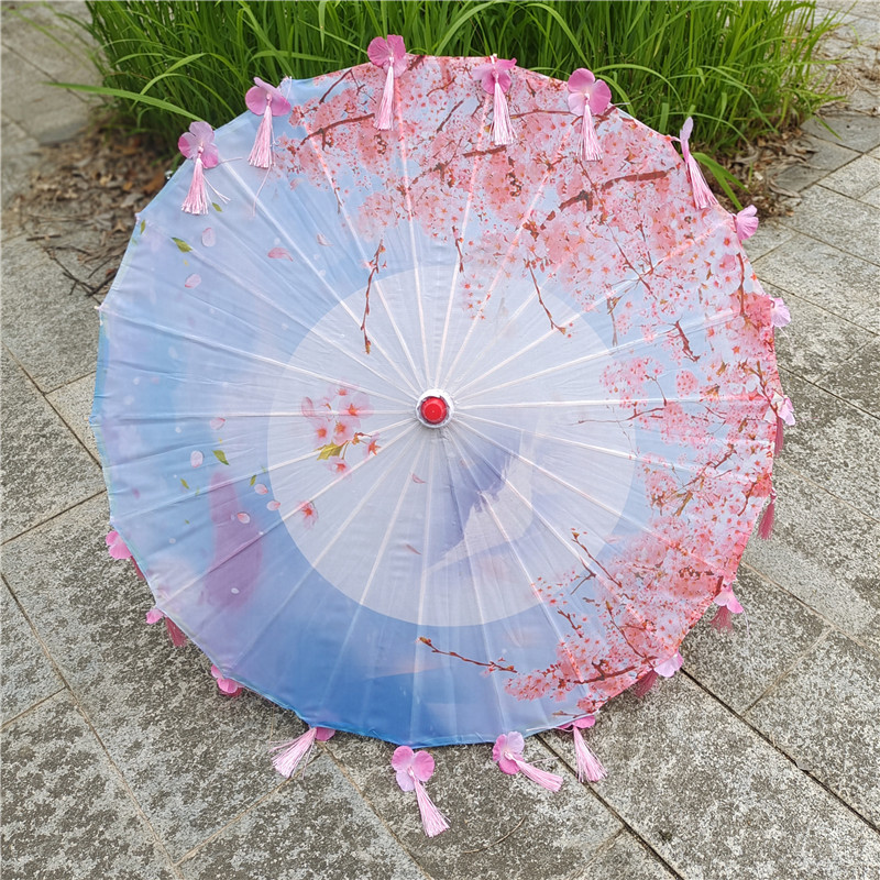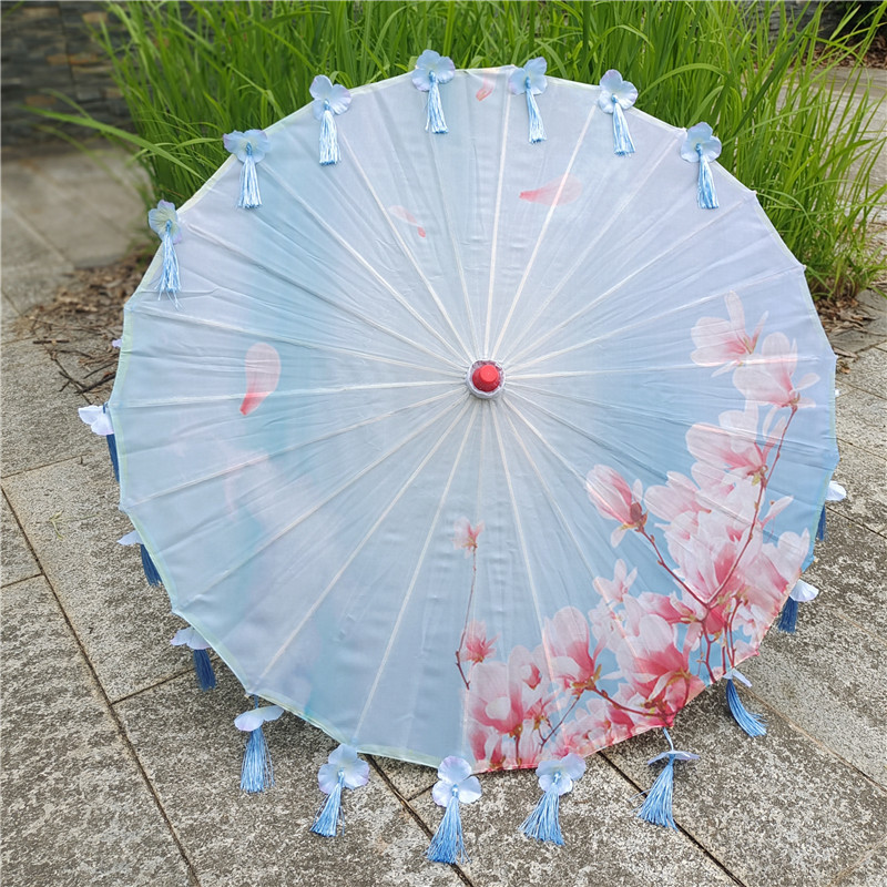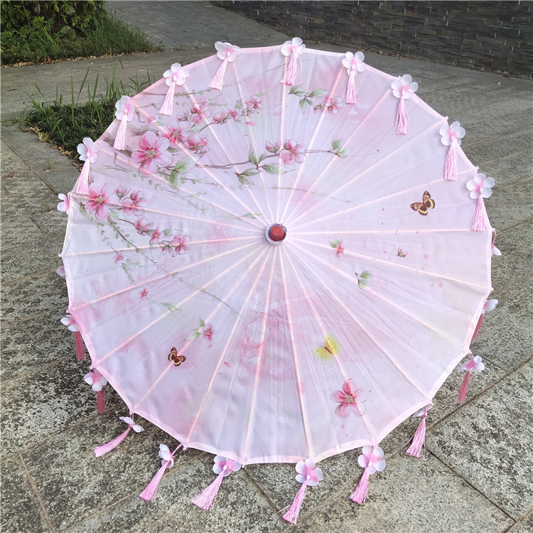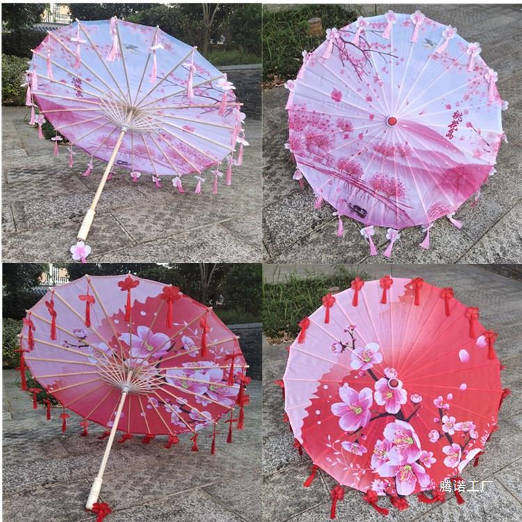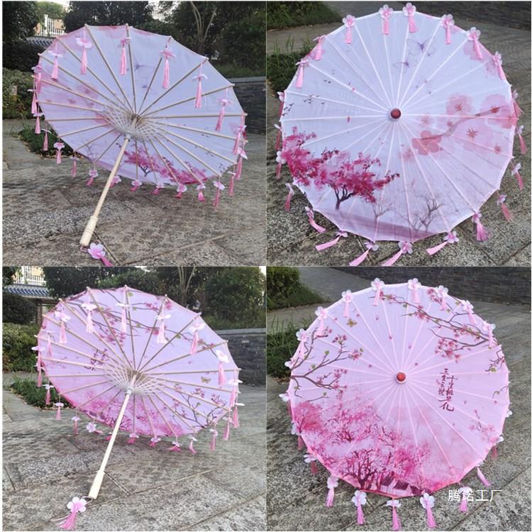 골동품 스타일 오일 페이퍼 우산 어린이 여성 한후 의상 우산 댄스 세트 우산 청삼쇼 우산 태슬 꽃잎 cos 우산스토어 가기