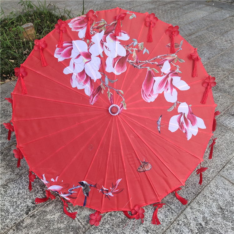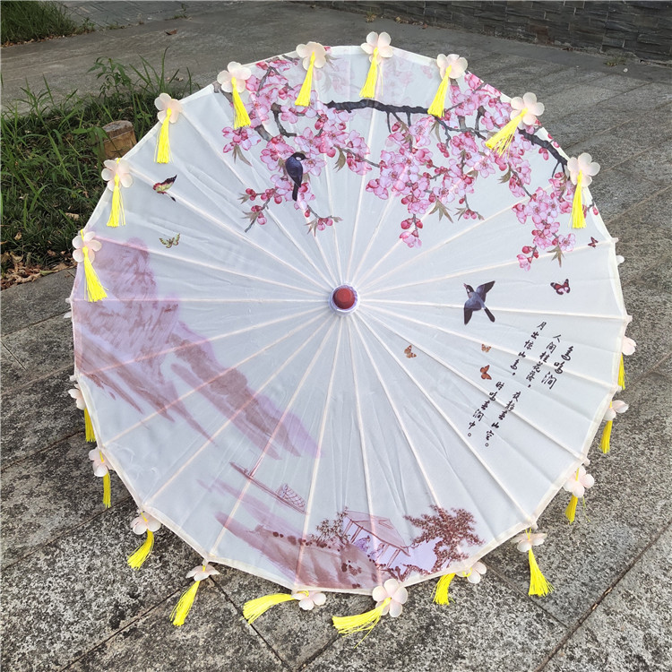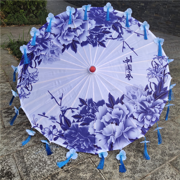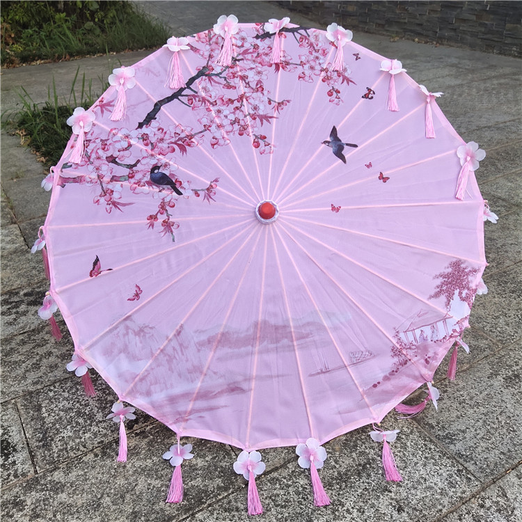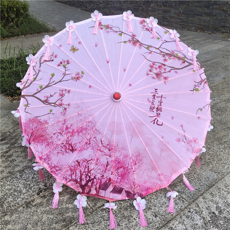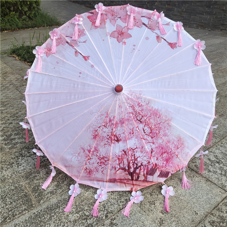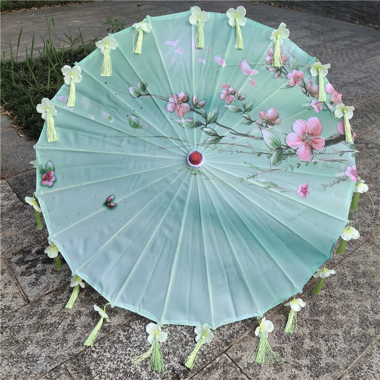 골동품 스타일 오일 페이퍼 우산 어린이 여성 한후 의상 우산 댄스 세트 우산 청삼쇼 우산 태슬 꽃잎 cos 우산스토어 가기