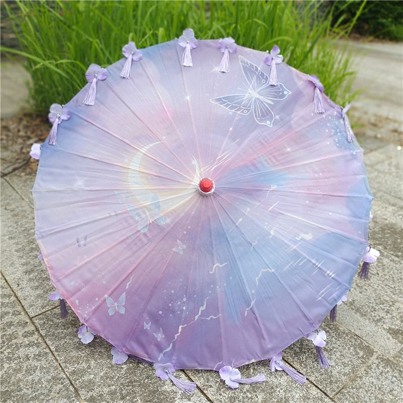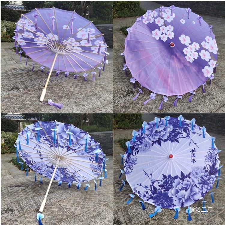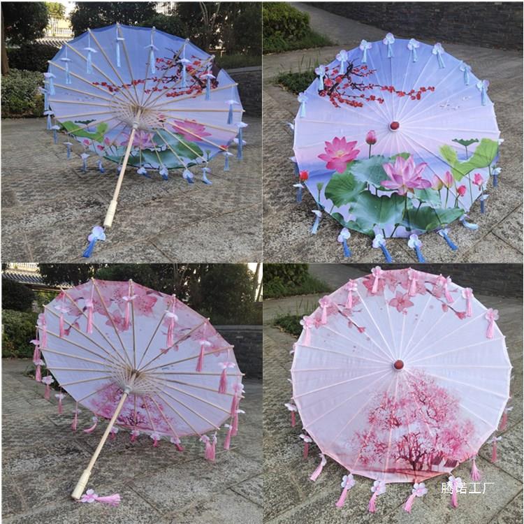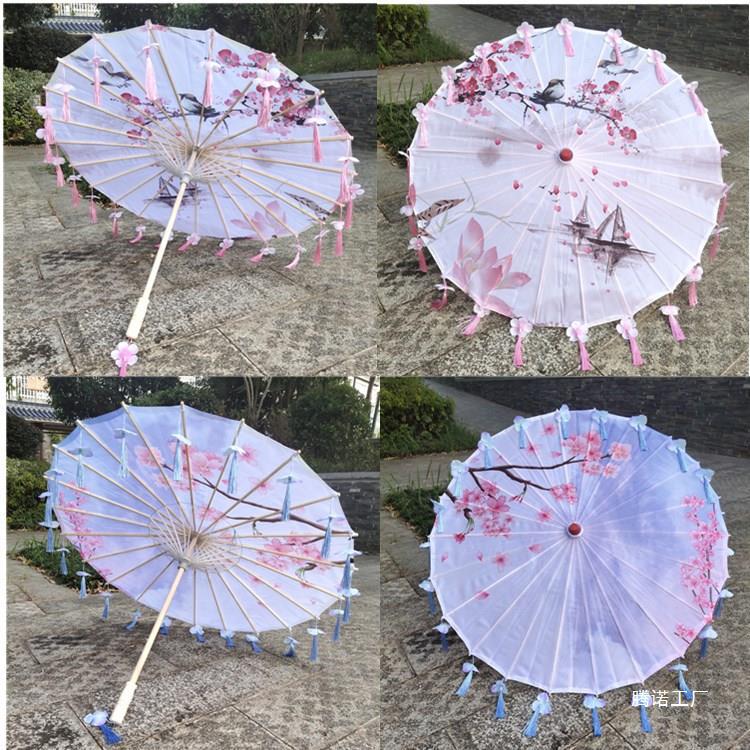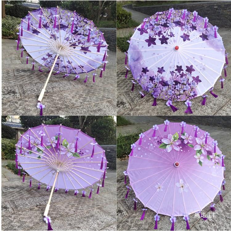 골동품 스타일 오일 페이퍼 우산 어린이 여성 한후 의상 우산 댄스 세트 우산 청삼쇼 우산 태슬 꽃잎 cos 우산