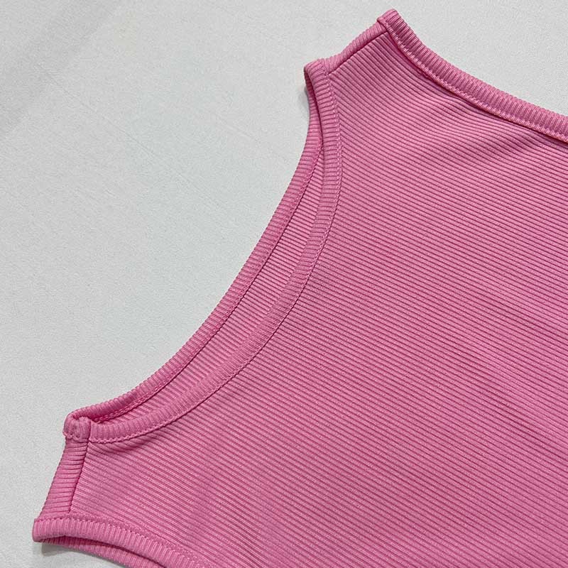 유럽과 미국의 여성 의류 2024 가을 새로운 단색 둥근 목 조끼 노출 사이드 스커트 세트 여성 대외 무역 도매