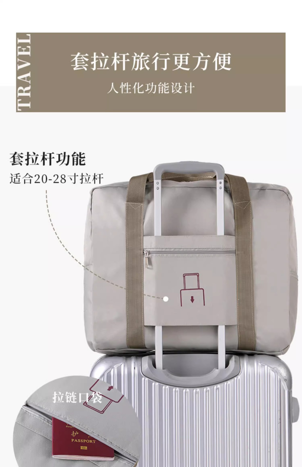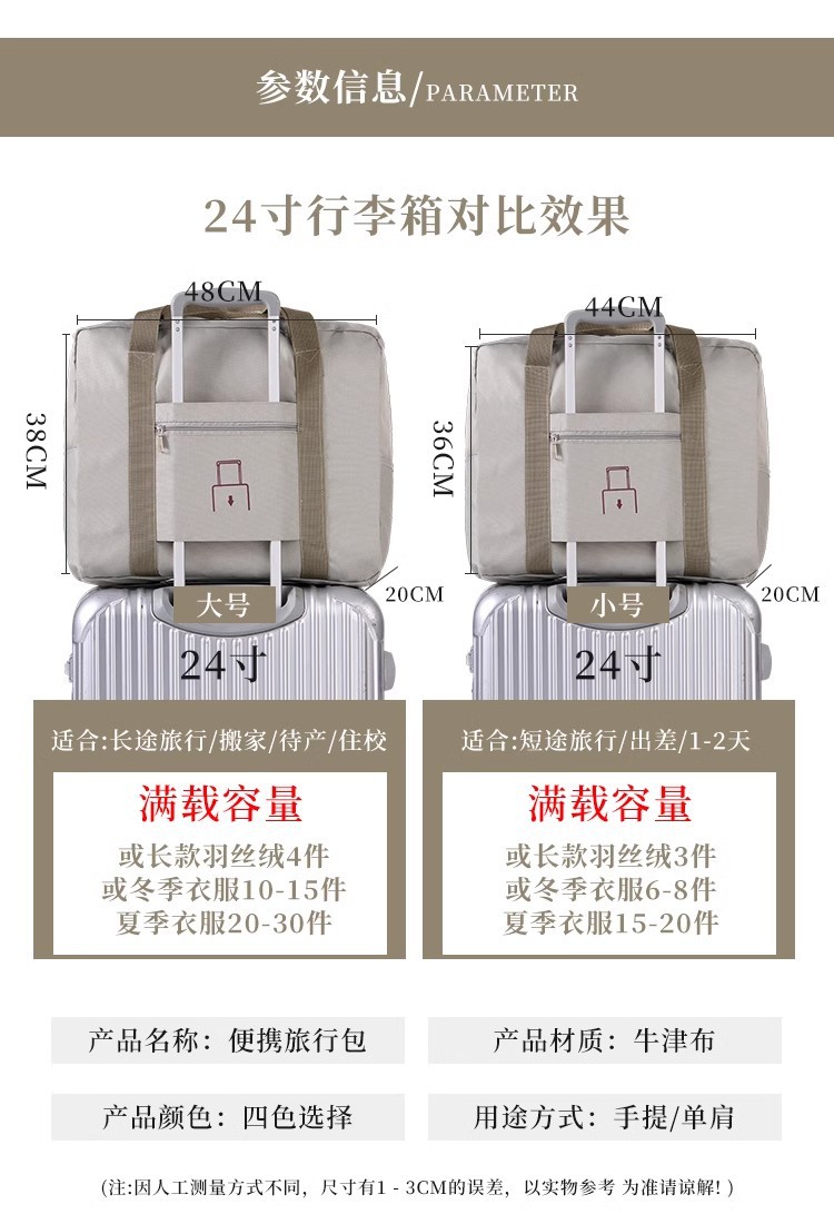 휴대용 여행 가방 여성의 단거리 소매 트롤리 수하물 가방 대용량 접이식 보관 피트니스 방수 가방