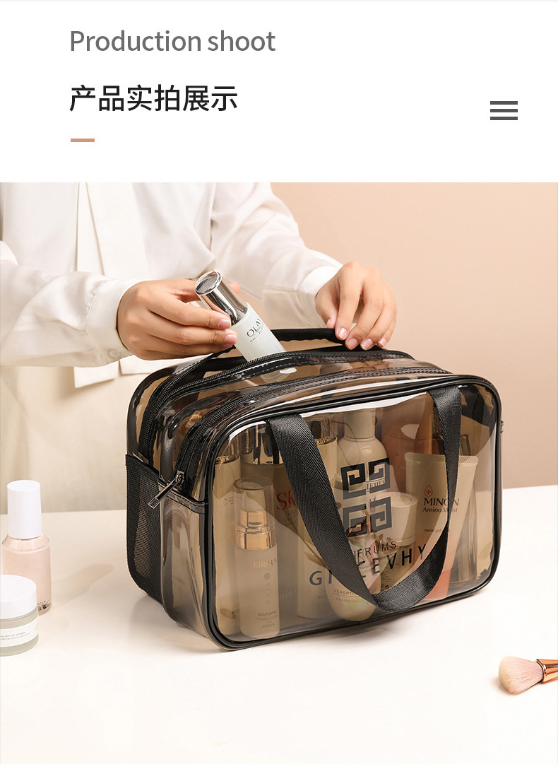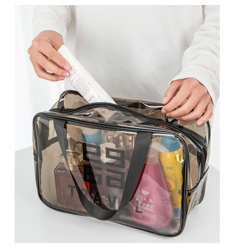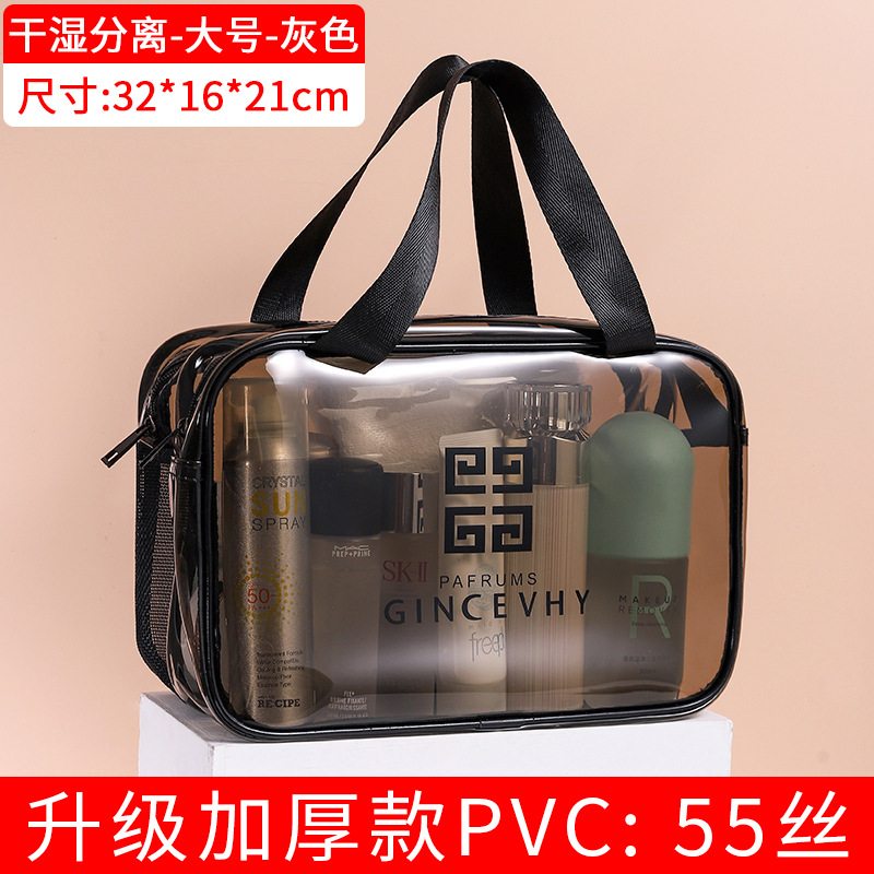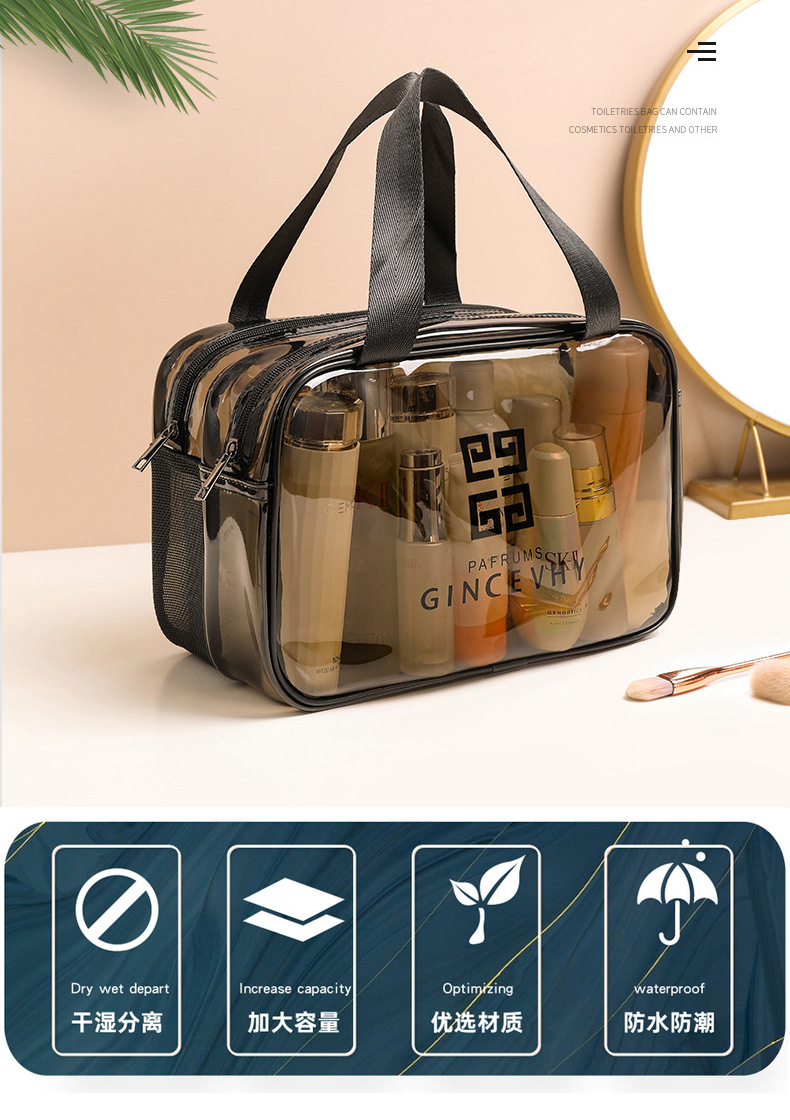 여성을위한 투명 PVC 대용량 화장품 가방 야외 여행 휴대용 건식 및 습식 분리 욕실 보관 가방 도매