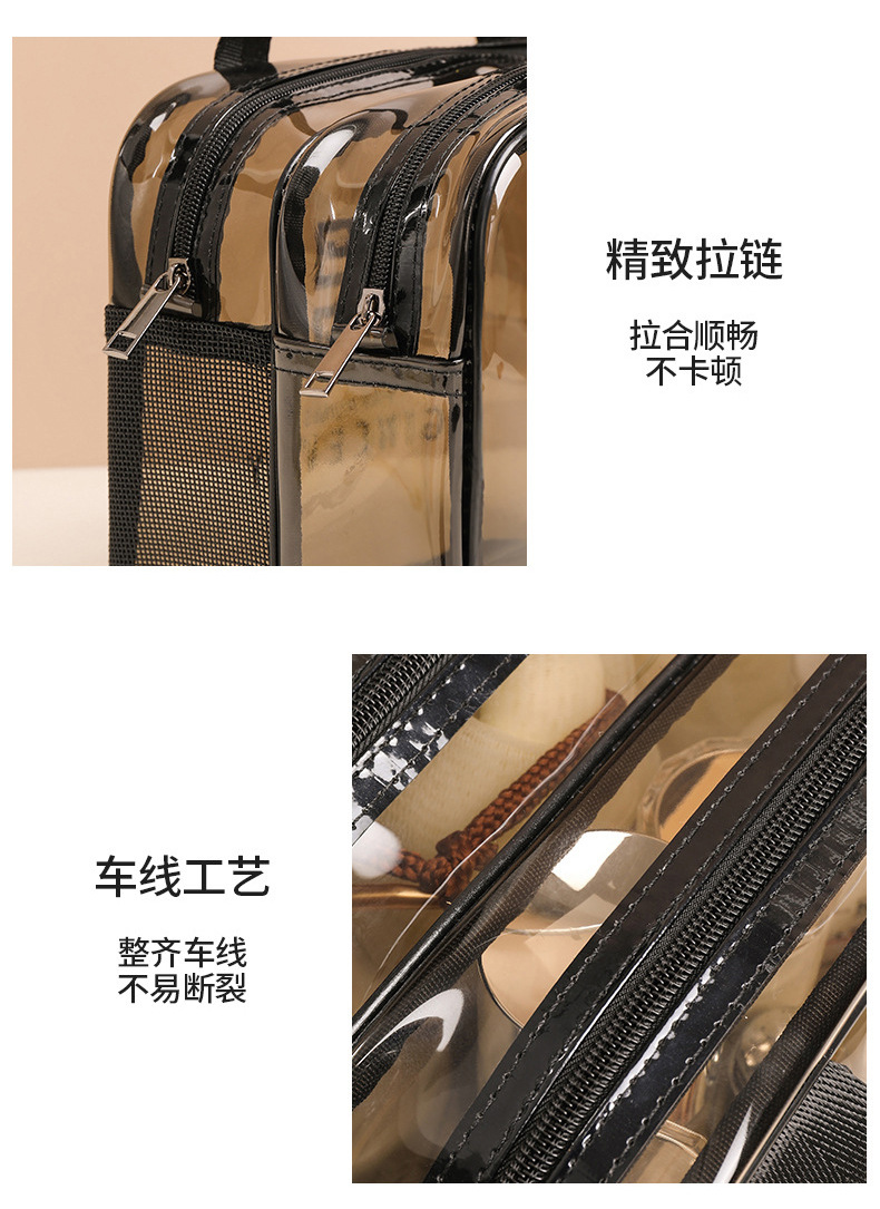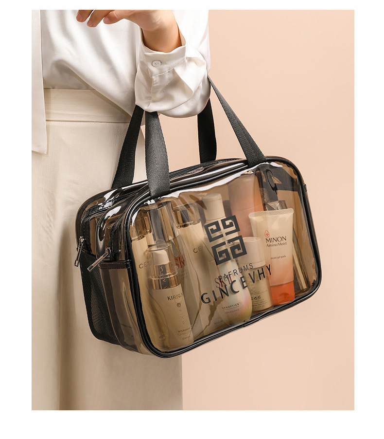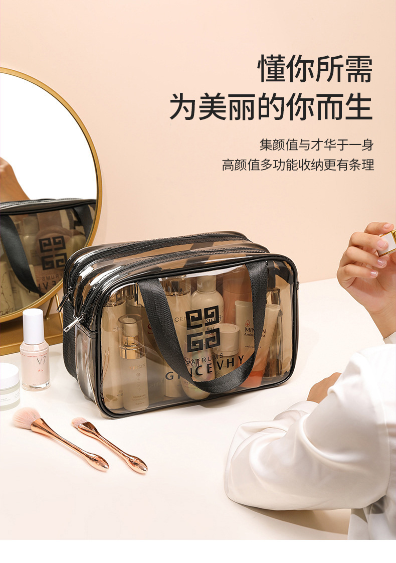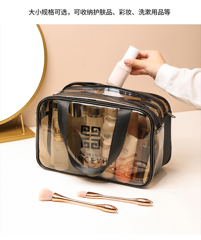 여성을위한 투명 PVC 대용량 화장품 가방 야외 여행 휴대용 건식 및 습식 분리 욕실 보관 가방 도매
