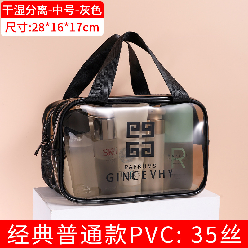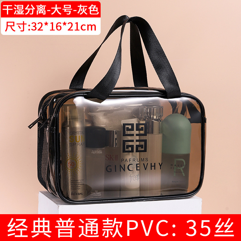여성을위한 투명 PVC 대용량 화장품 가방 야외 여행 휴대용 건식 및 습식 분리 욕실 보관 가방 도매스토어 가기
