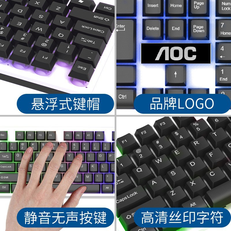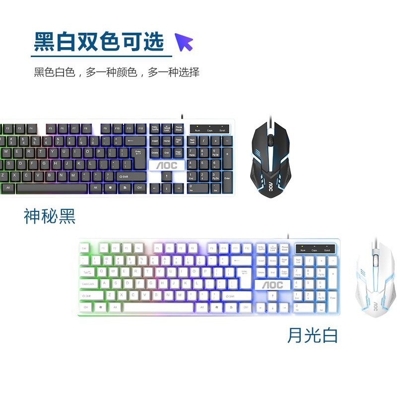 AOC KM100 서스펜션 유선 USB 빛나는 키보드 마우스 세트 컴퓨터 기계 느낌 백라이트 키보드 마우스 세트