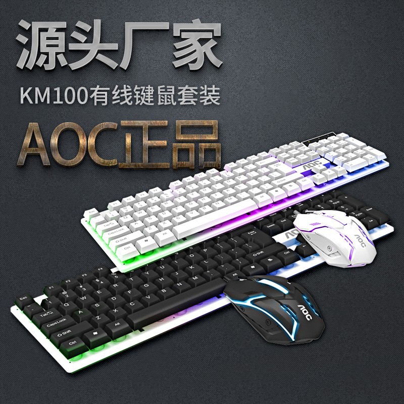 AOC KM100 서스펜션 유선 USB 빛나는 키보드 마우스 세트 컴퓨터 기계 느낌 백라이트 키보드 마우스 세트스토어 가기