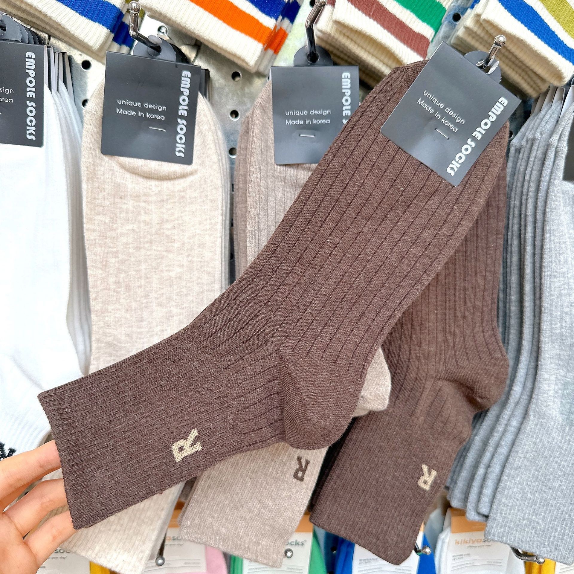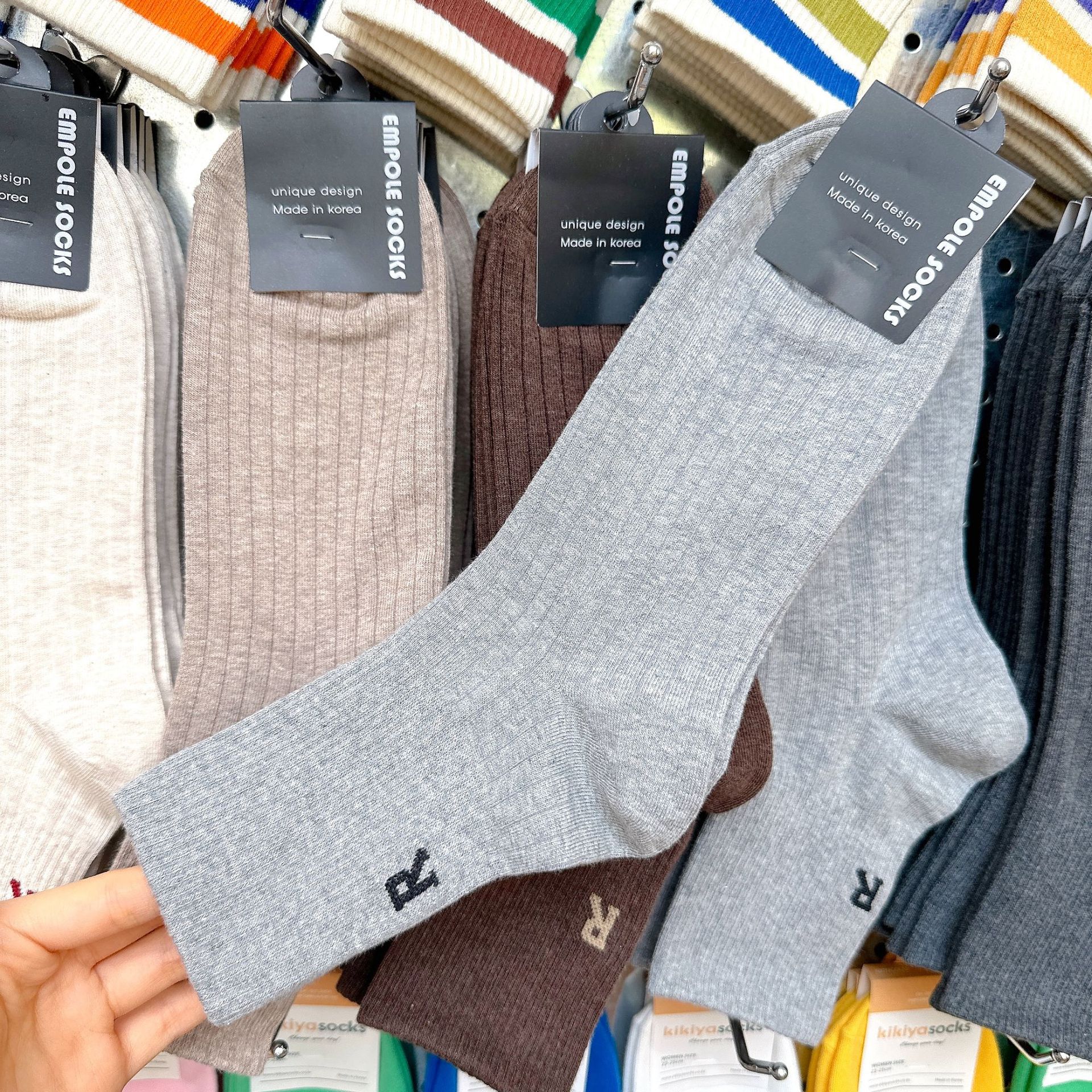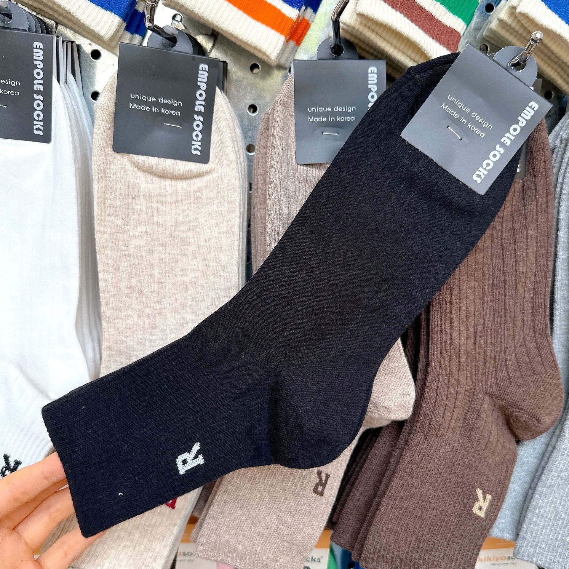 [재고] 한국 수입 단색 양말 남성 2338 동대문 가을 새 편지 R 캐주얼 스타킹스토어 가기