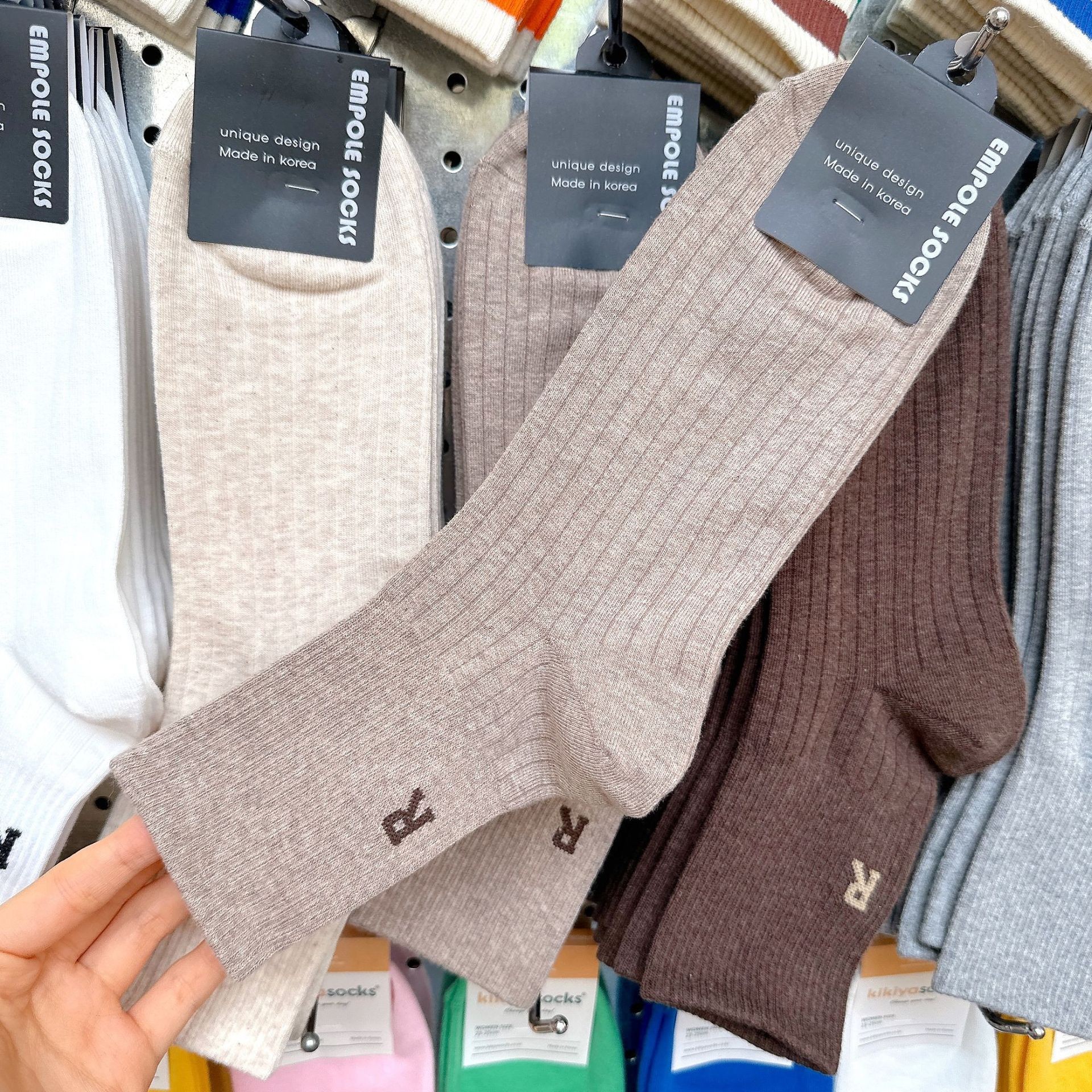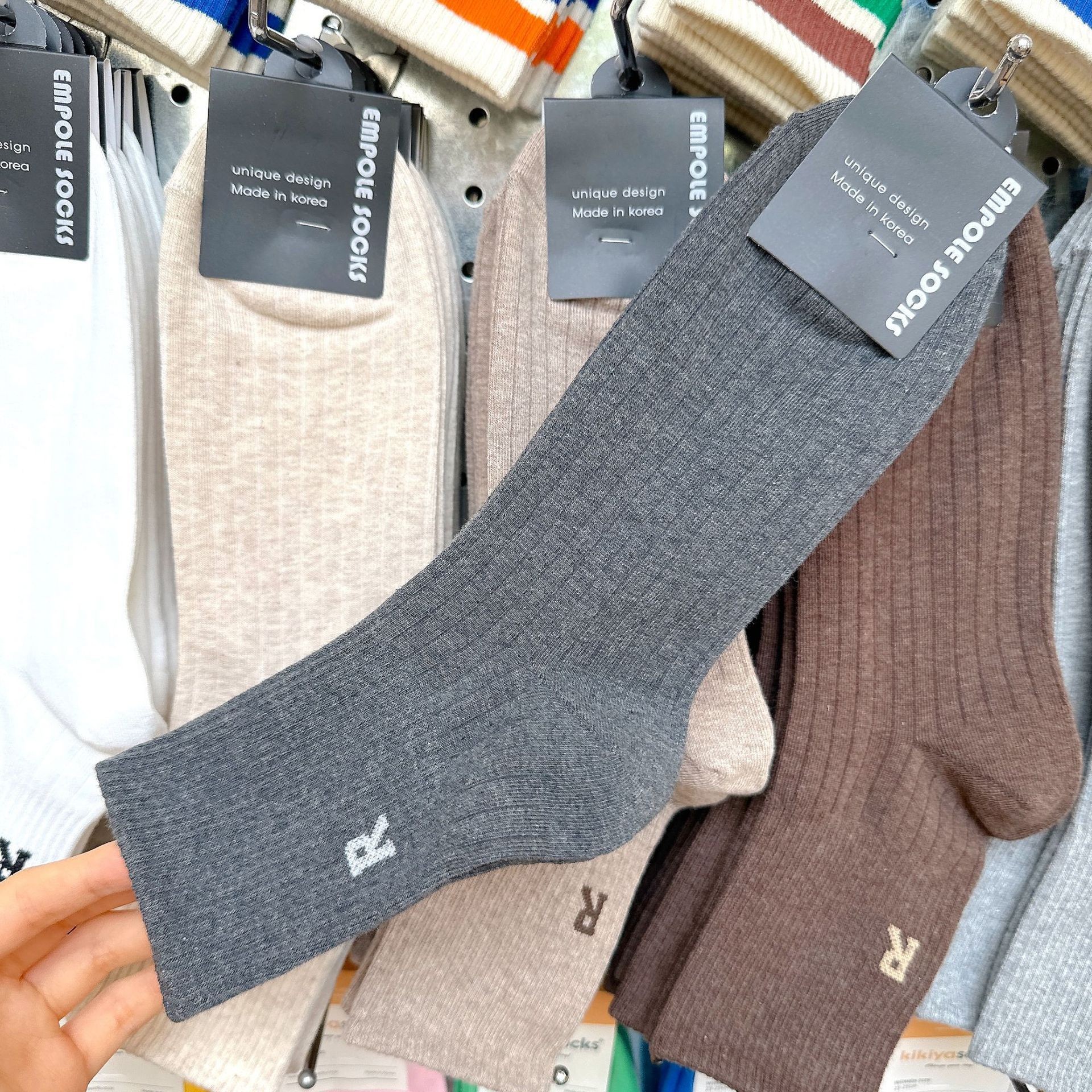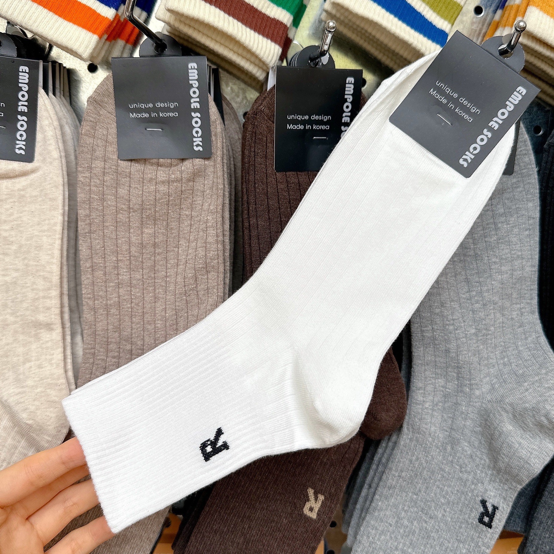 [재고] 한국 수입 단색 양말 남성 2338 동대문 가을 새 편지 R 캐주얼 스타킹스토어 가기
