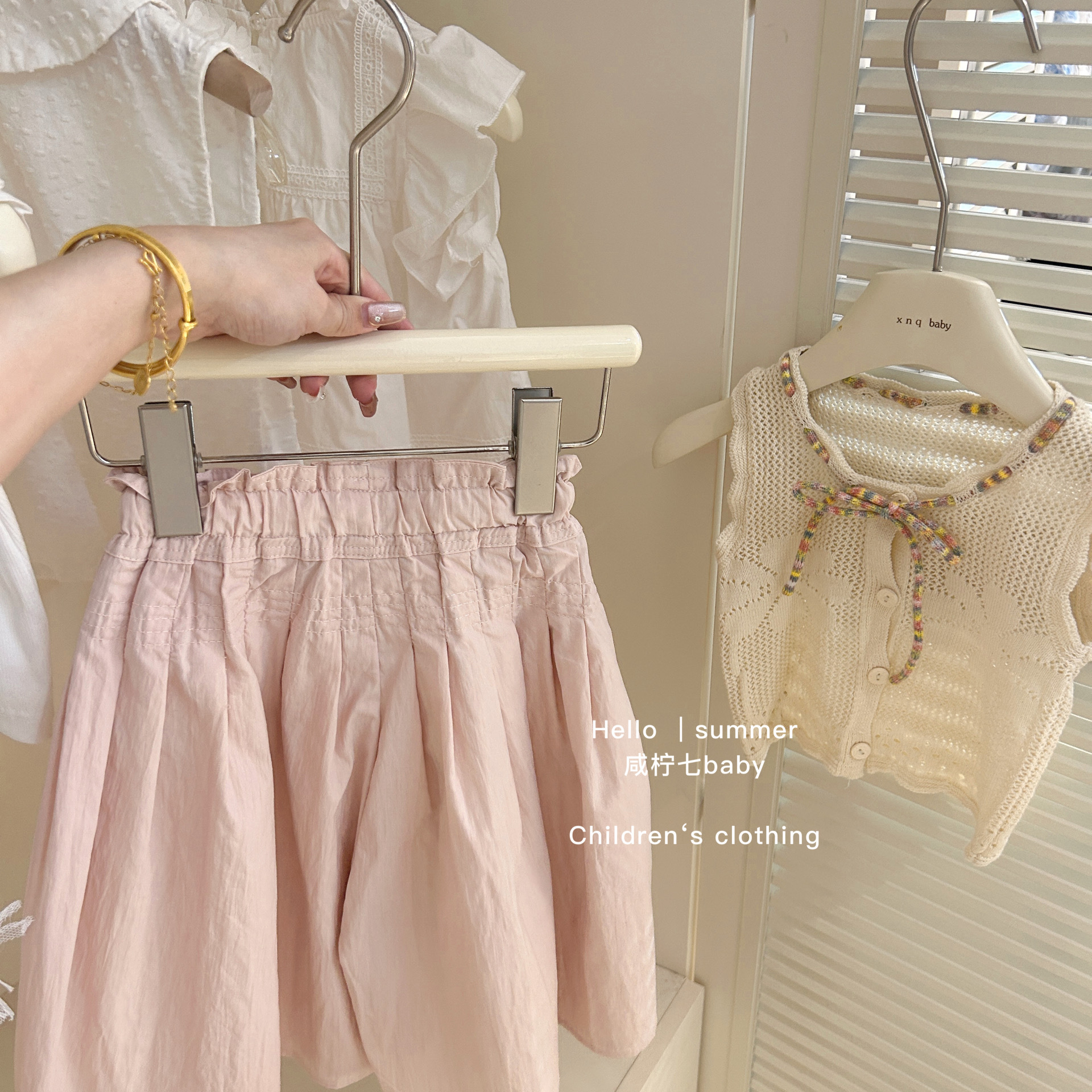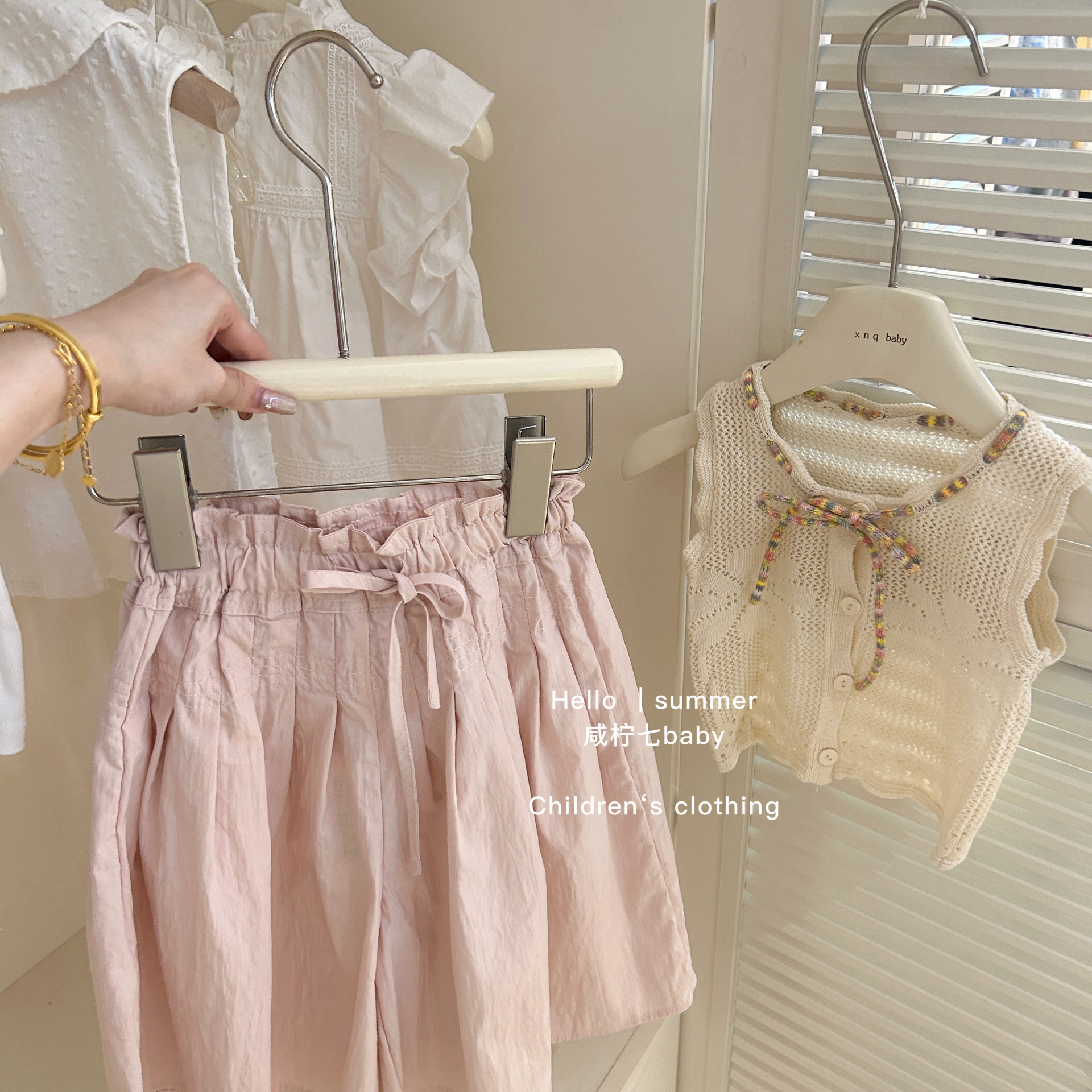Qixiaoqi 베이비 아동복 여아용 속이 비치는 니트 조끼 여름 얇은 상의 중소형 아동용 2026 여름 신상품