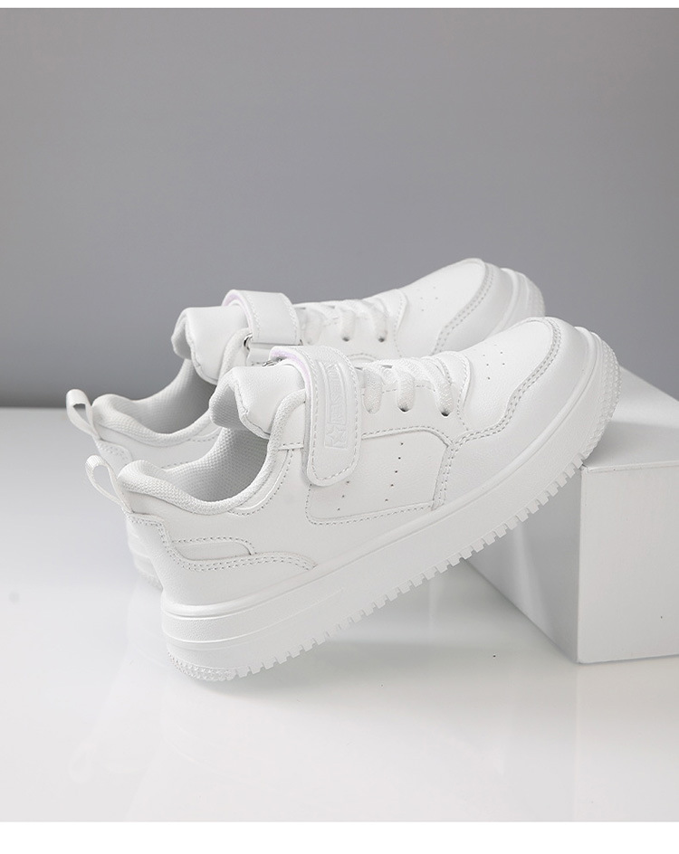 2024 년 새 가죽 신발 소녀 중 큰 어린이 미끄럼 방지 소프트 단독 어린이 캐주얼 신발 소년 흰색 신발 봄과 가을