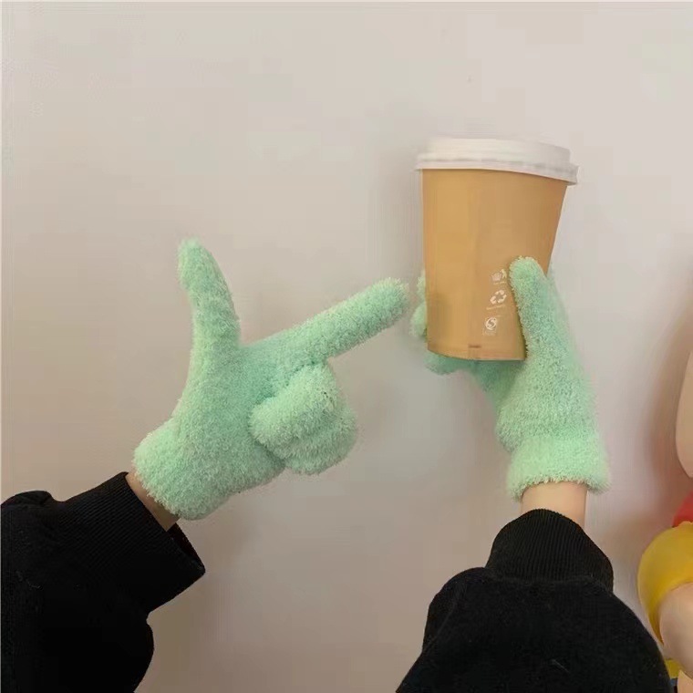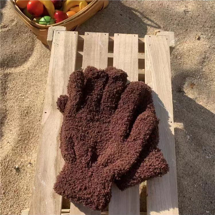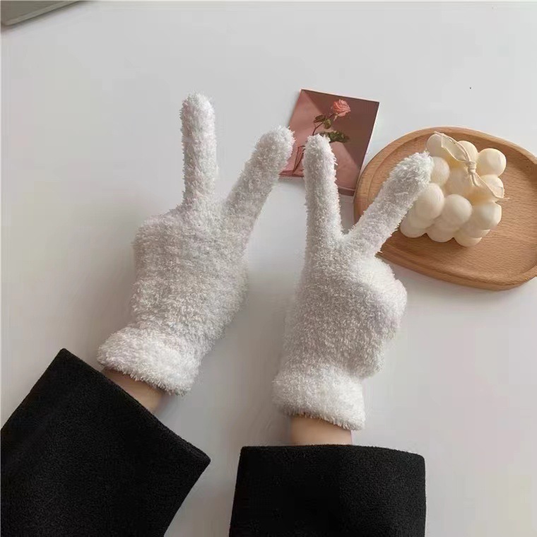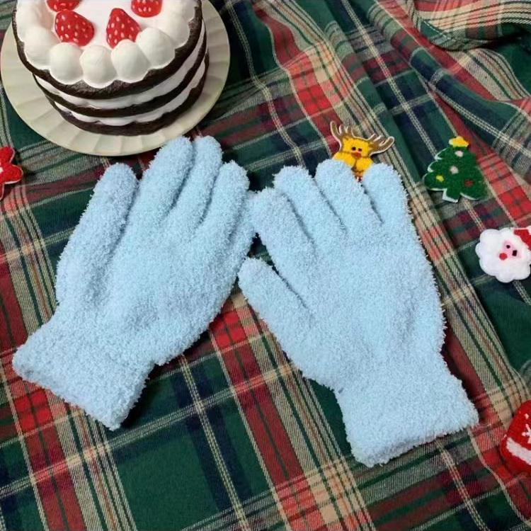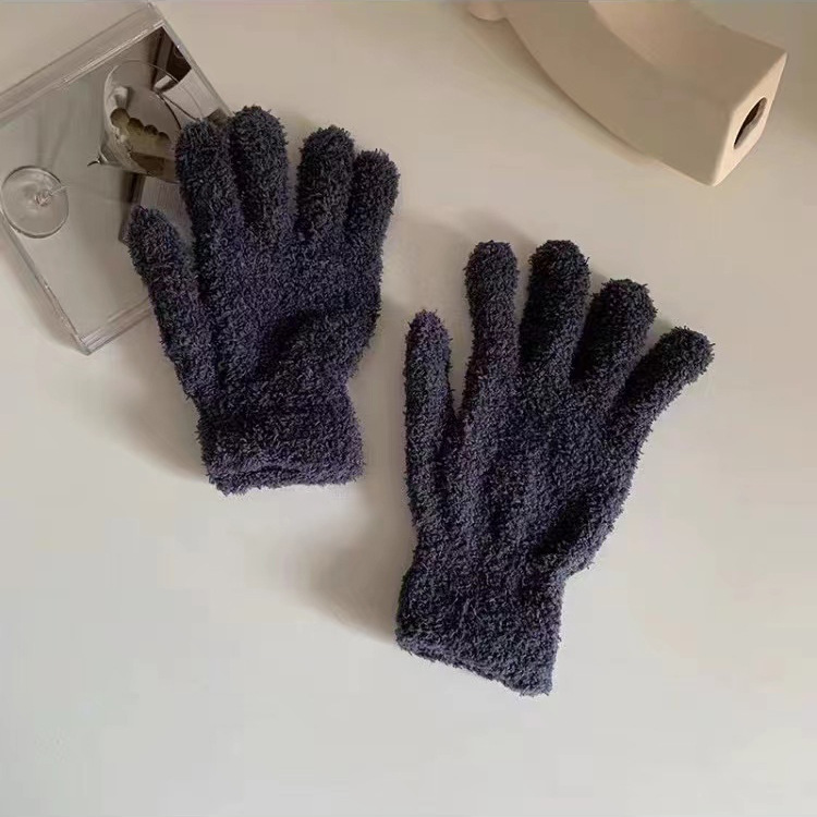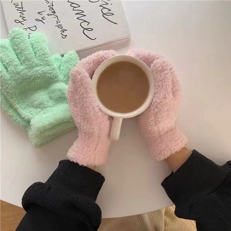 가을과 겨울 두꺼운 봉제 장갑 따뜻한 미끄럼 방지 소녀 다섯 손가락 장갑 산호 양털 단색 조커 장갑 도매스토어 가기