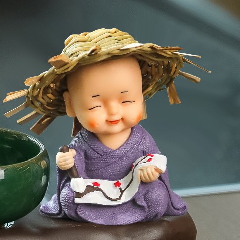 중국 선 스타일 작은 스님 장식 귀여운 작은 스님 데스크탑 차 테이블 차 애완 동물 차 테이블 사무실 장식 작은 장식