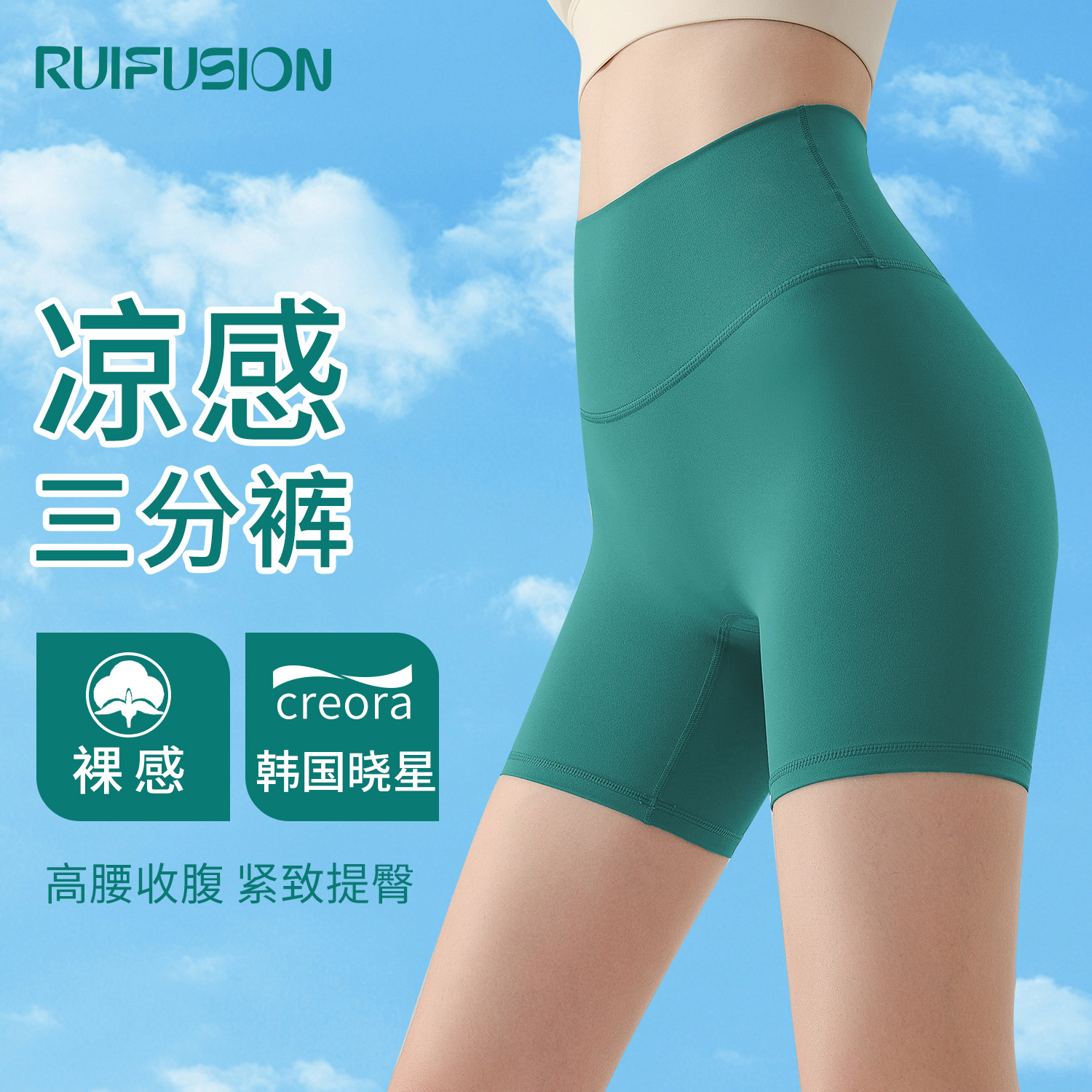 벌거 벗은 요가 반바지 여성용 높은 허리 엉덩이 리프팅 타이트 라이딩 팬츠 러닝 피트니스 3 점 반바지 벨리 타이트 반바지