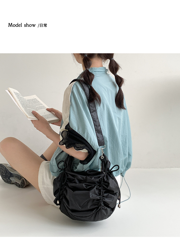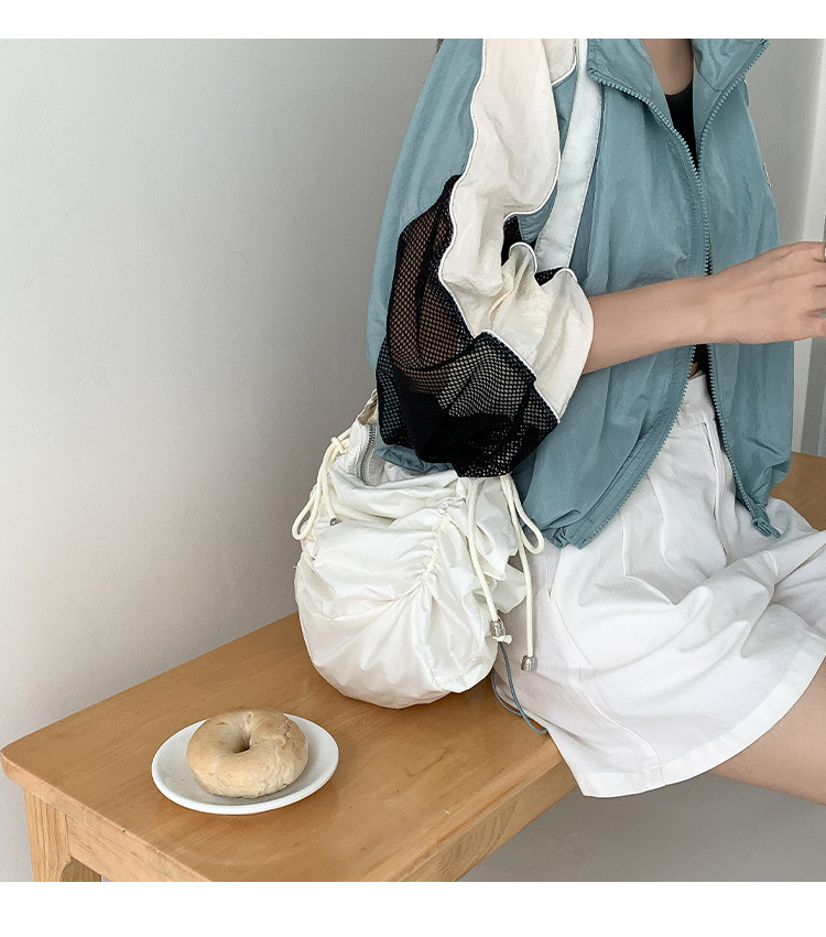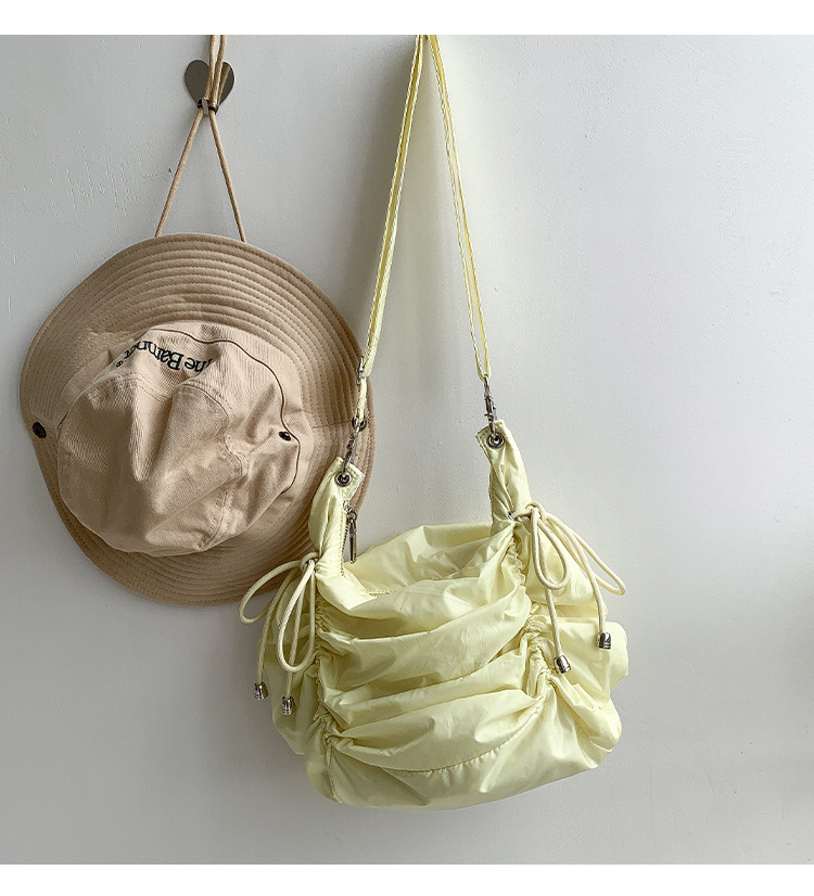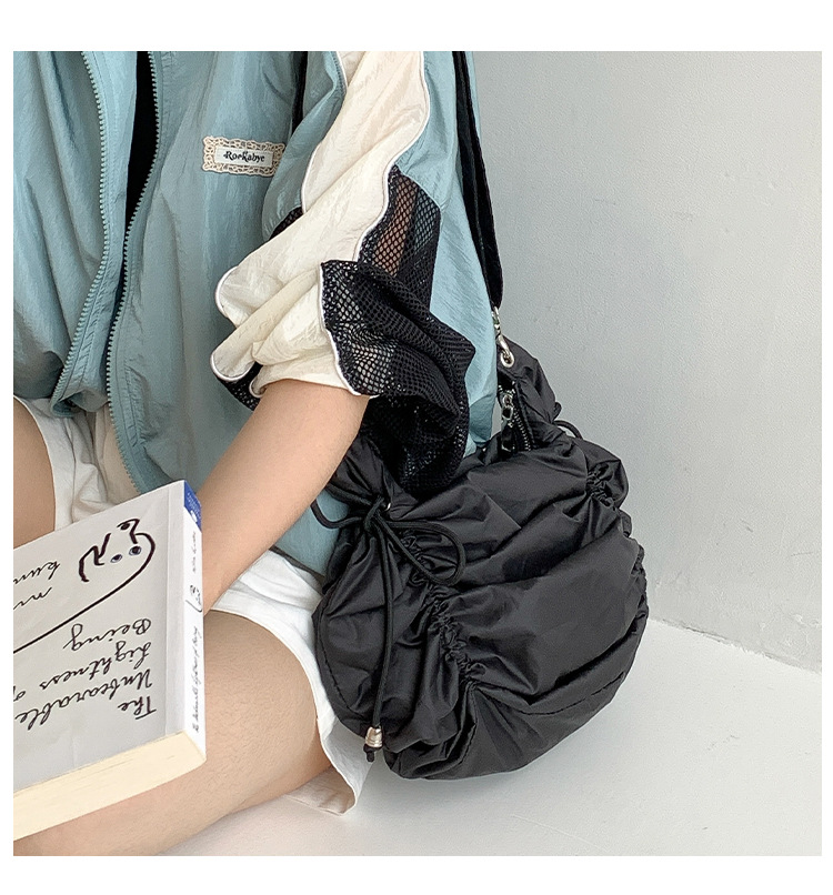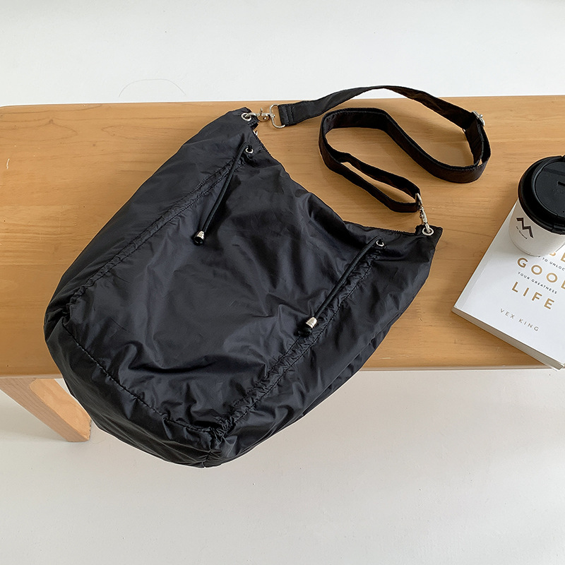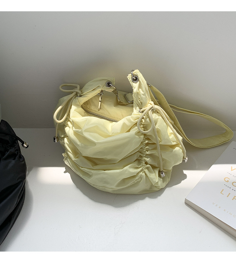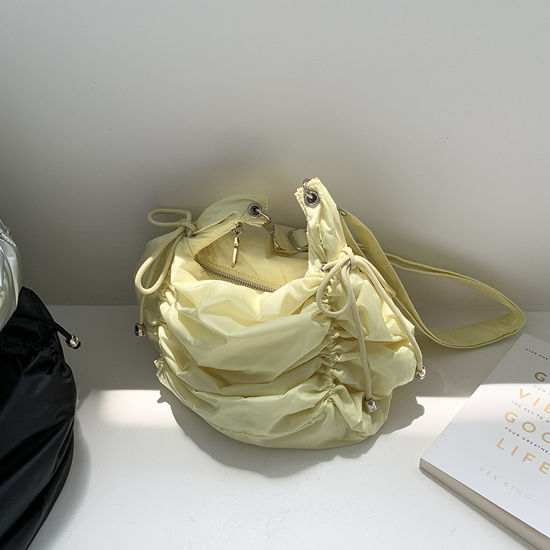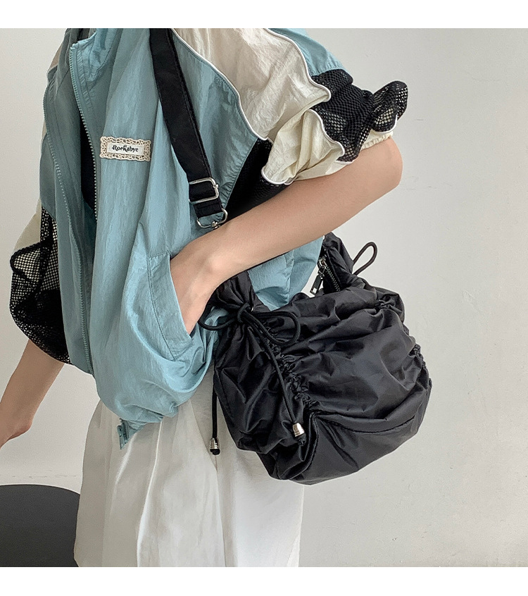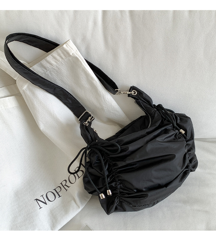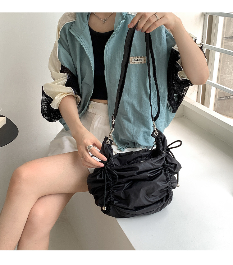 한국 스타일 틈새 스타일 주름 로프 나일론 가방 대용량 유행 간단한 여성의 여름 경량 어깨 크로스 백
