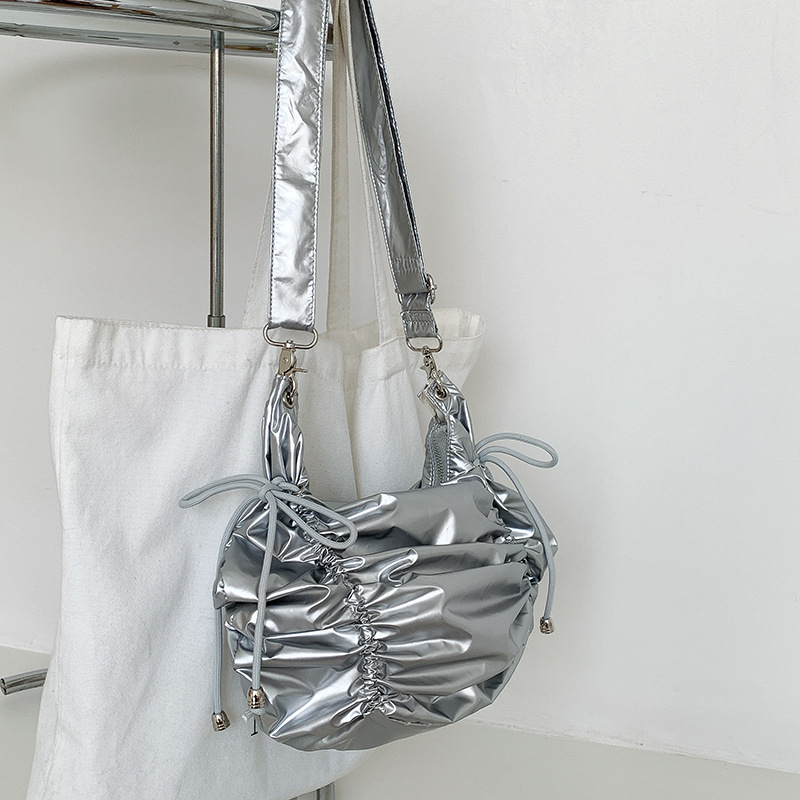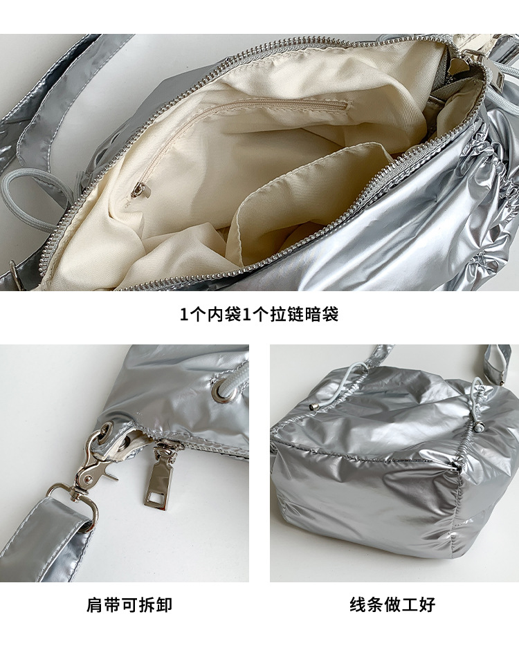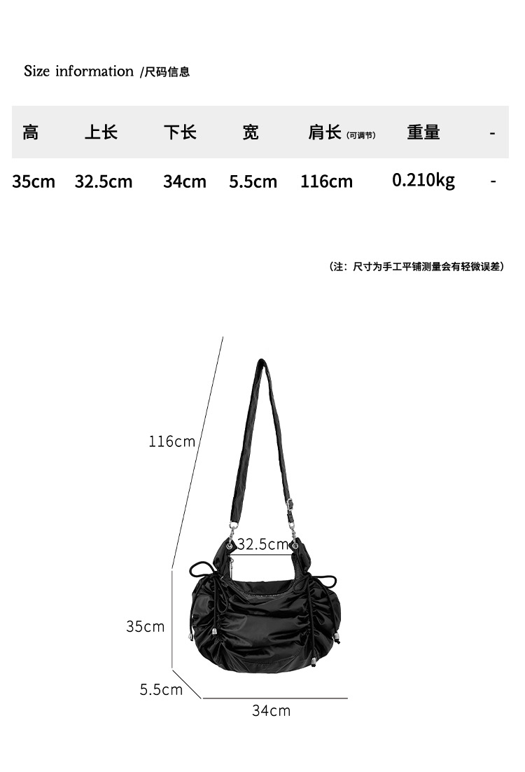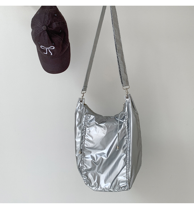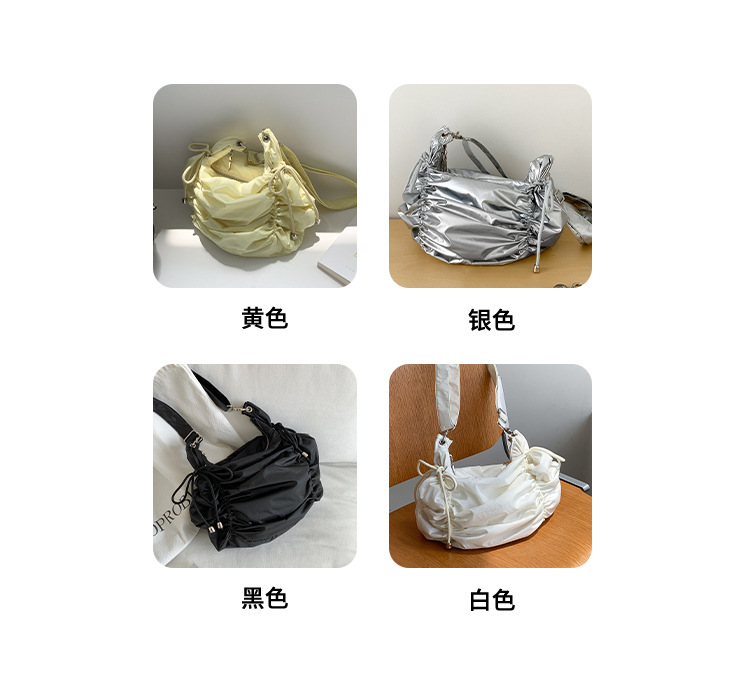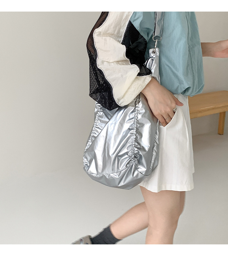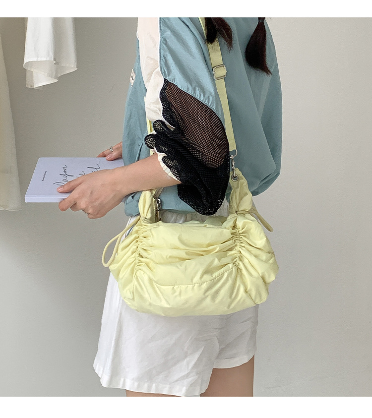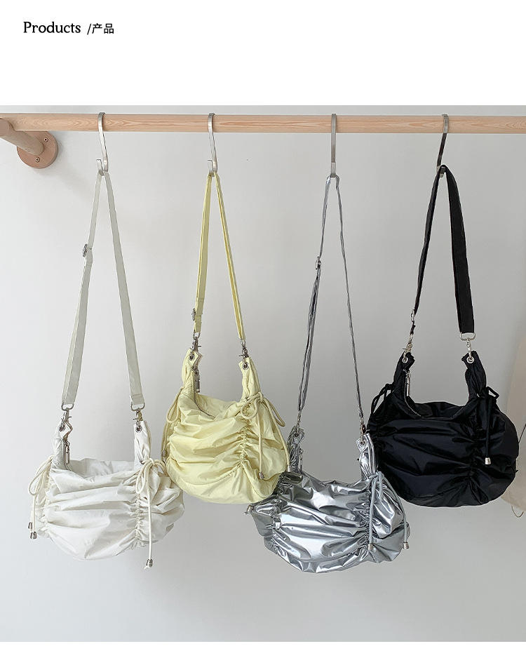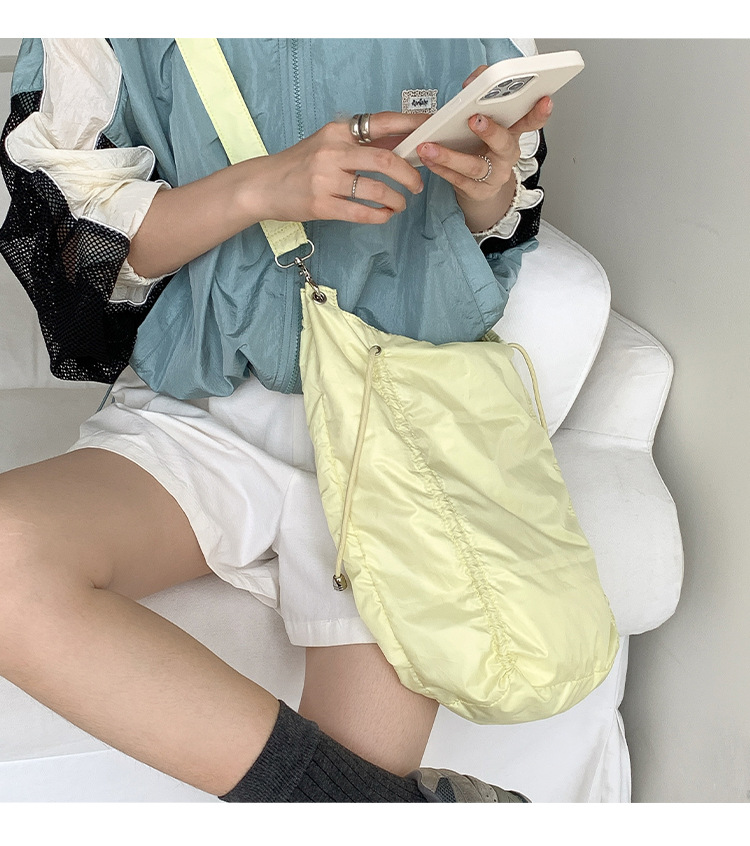 한국 스타일 틈새 스타일 주름 로프 나일론 가방 대용량 유행 간단한 여성의 여름 경량 어깨 크로스 백
