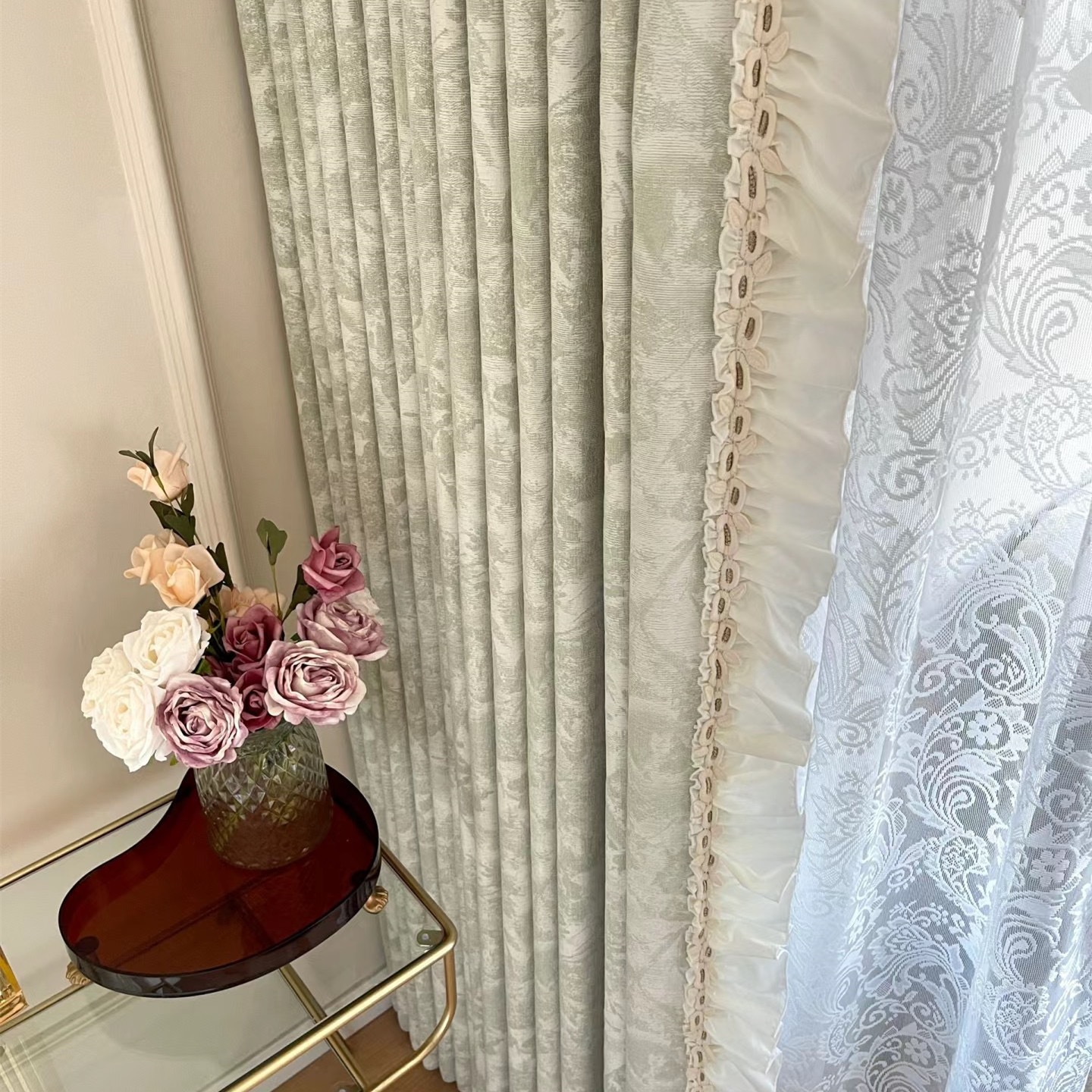샹젤리제 가든 프랑스 빈티지 체닐 자카드 커튼 음영 거실 침실 고급 감각 3 천 골드 동일 스타일스토어 가기