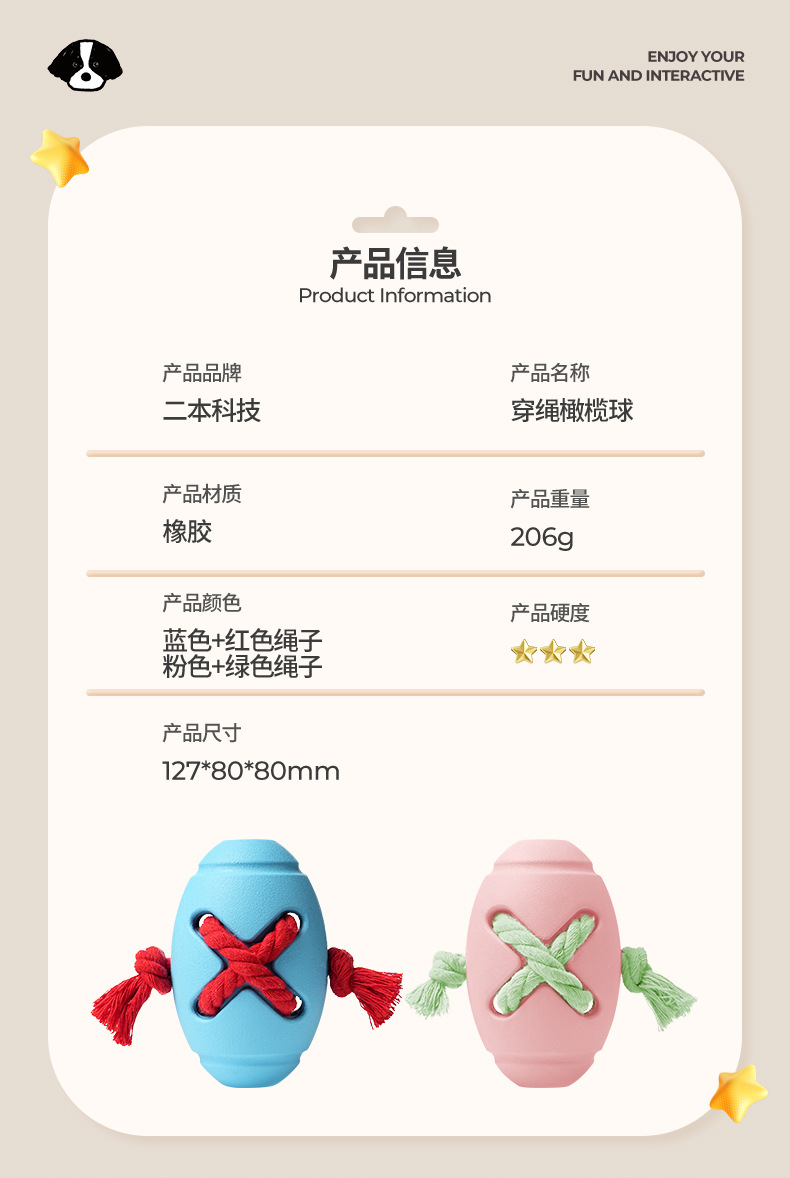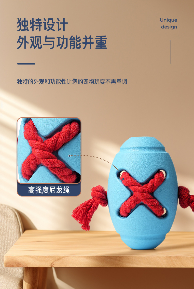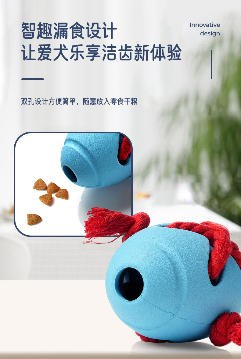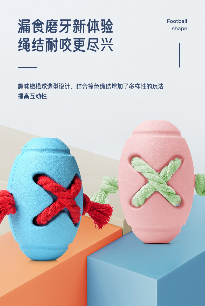 中型犬漏食穿绳橄榄球玩具天然橡胶宠物玩具互动训练藏食狗狗玩具