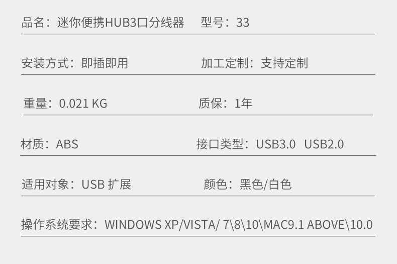 미니 3 대 1 도킹 스테이션 휴대용 usb3.0 허브 3 포트 도킹 스테이션 고속 스플리터 HUB 멀티 포트