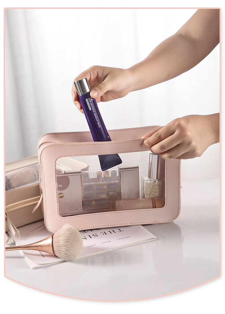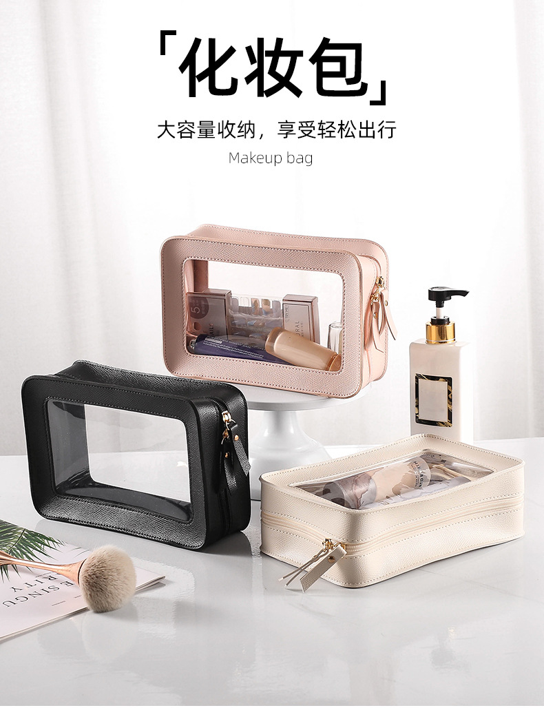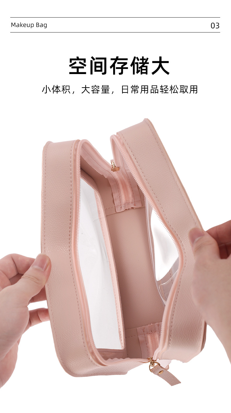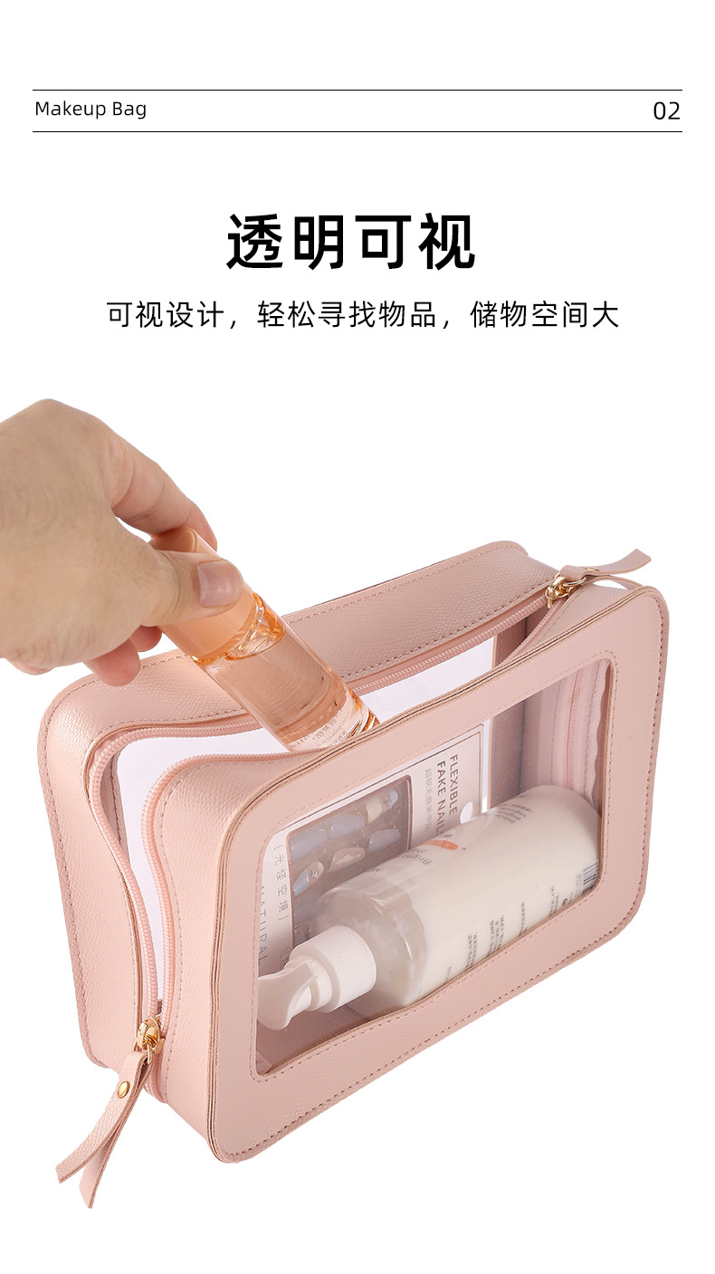 새로운 양면 PU 하드 화장품 가방 대용량 휴대용 방수 화장실 가방 유행 여행 저장을위한 간단한 스페셜