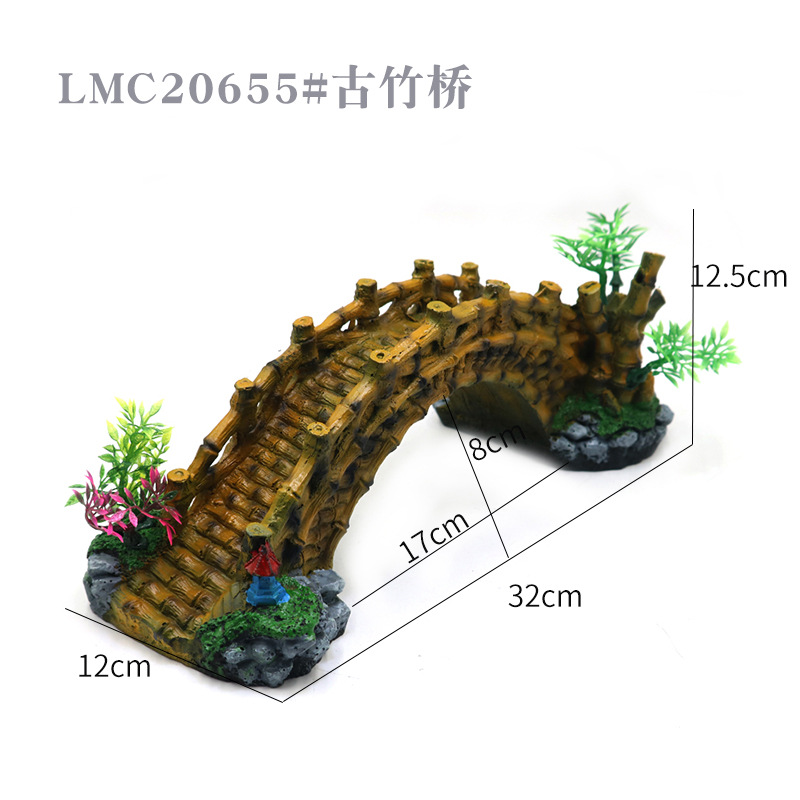소스 제조 업체 공급 어항 조경 장식 대나무 다리 수족관 장비 액세서리 수지 다리 거북이 등반 플랫폼 복고풍 아치 다리