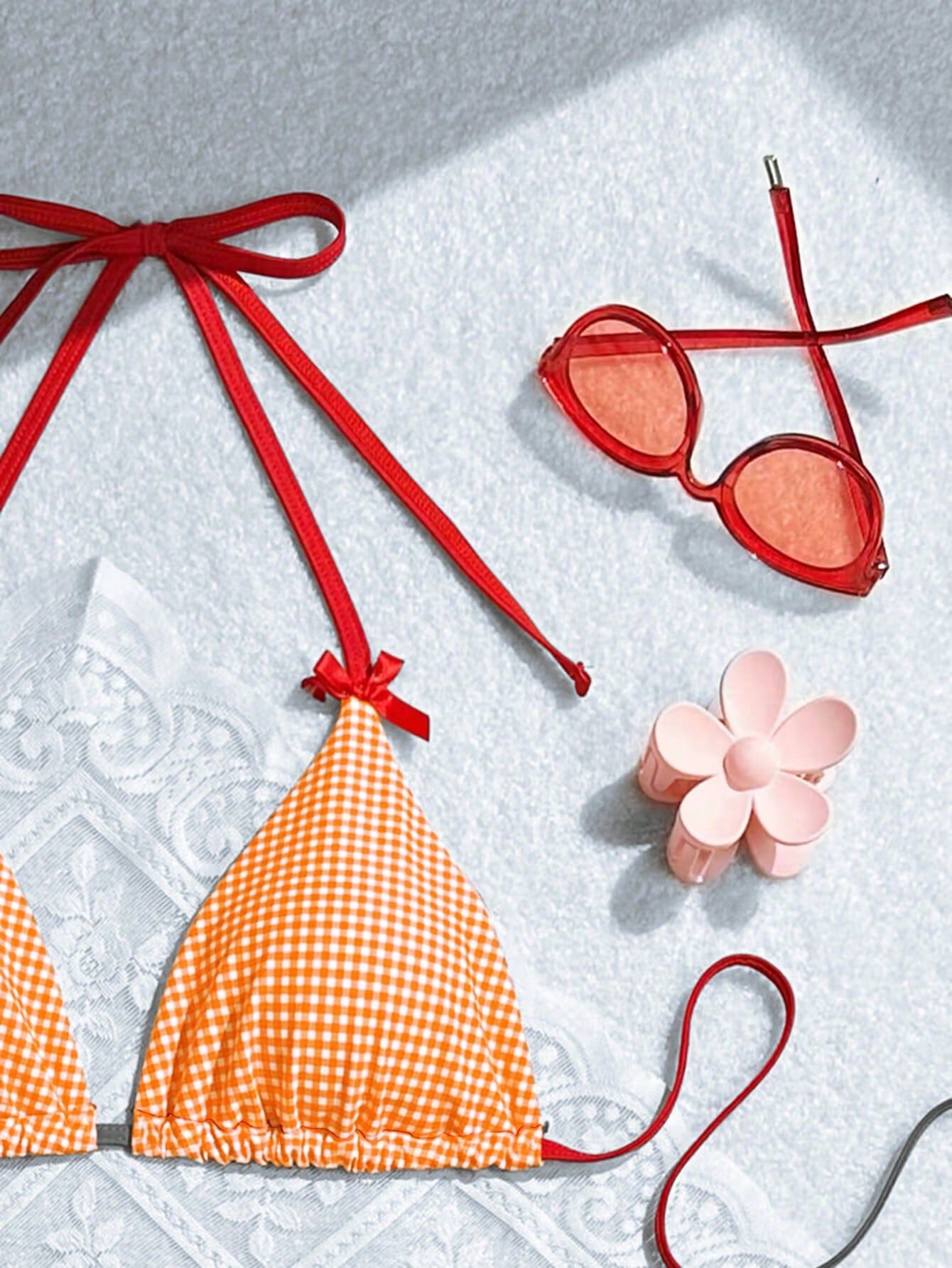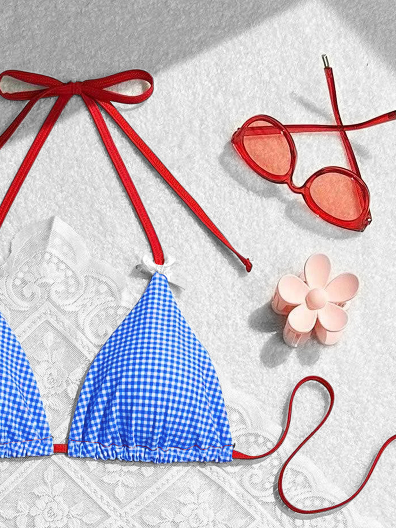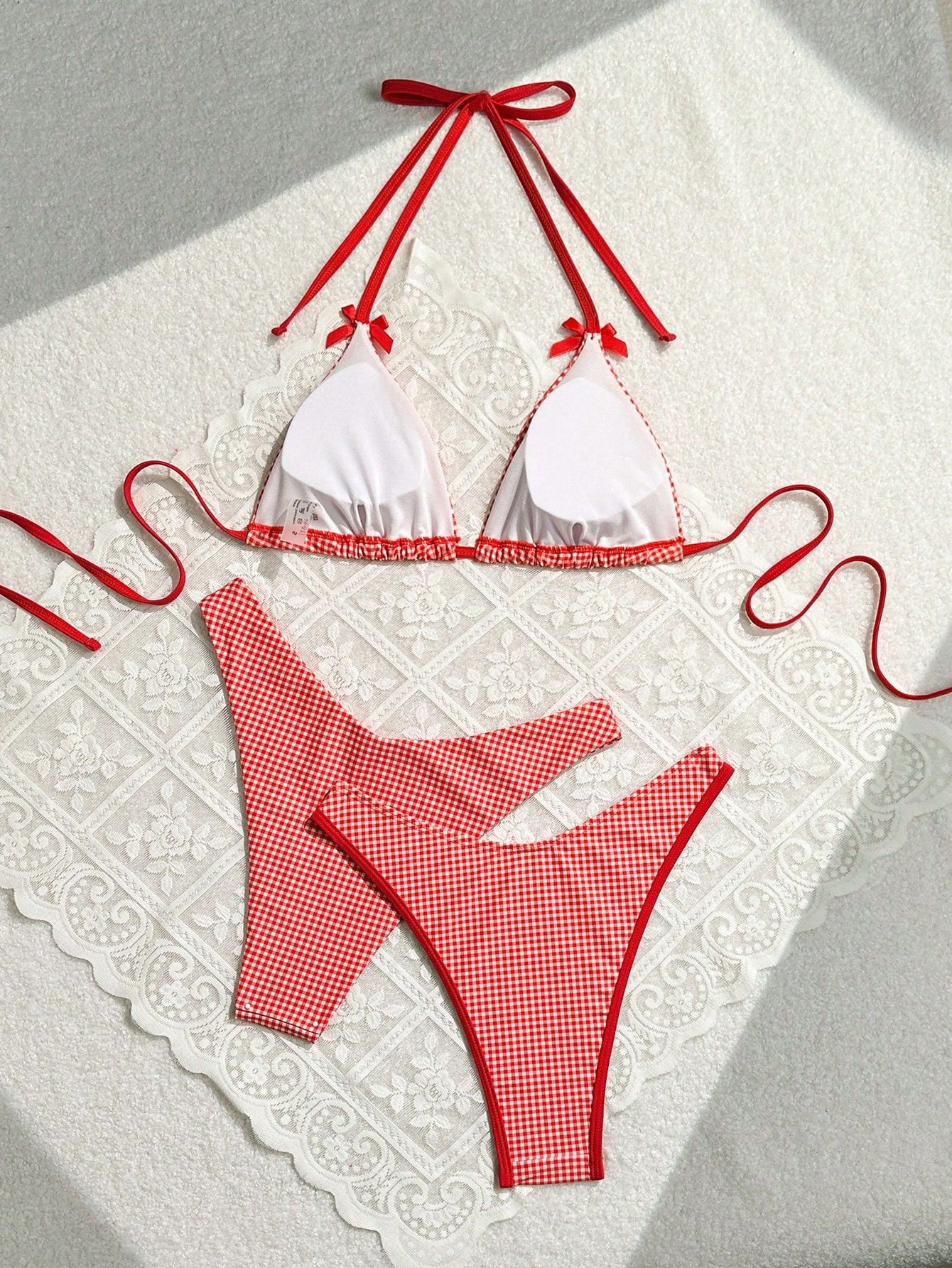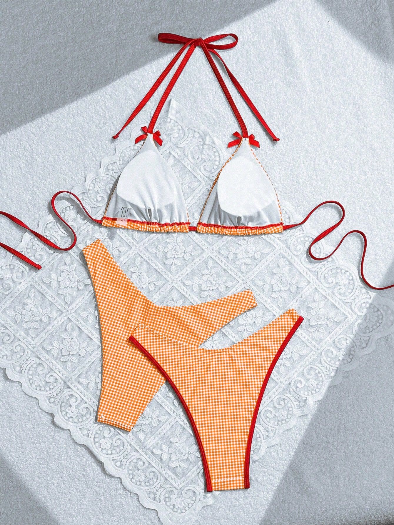 2024 여름 새로운 달콤한 스타일 활 꽃 격자 무늬 여성 분할 휴일 수영복 크로스 국경 비키니