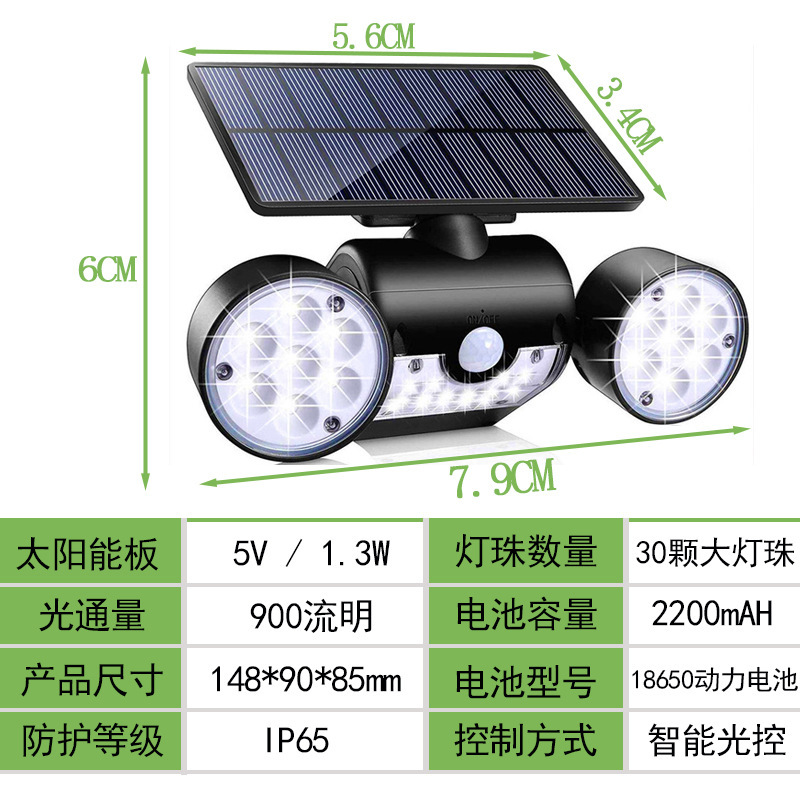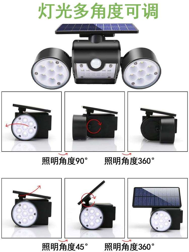 차고 도로 인체 유도 램프 야외 안뜰 조명 도로 태양 램프 국경 3 헤드 벽 램프 제조 업체스토어 가기