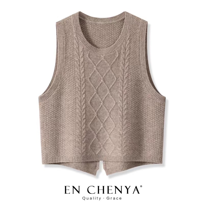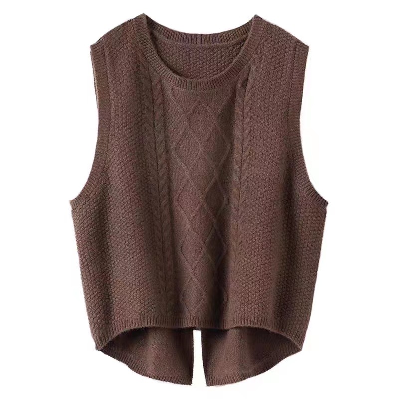 여성을 위한 새로운 가을 겨울 100 울 조끼, 겉옷으로 활용도가 높은 루즈한 슬릿 이너 니트 스웨터 조끼
