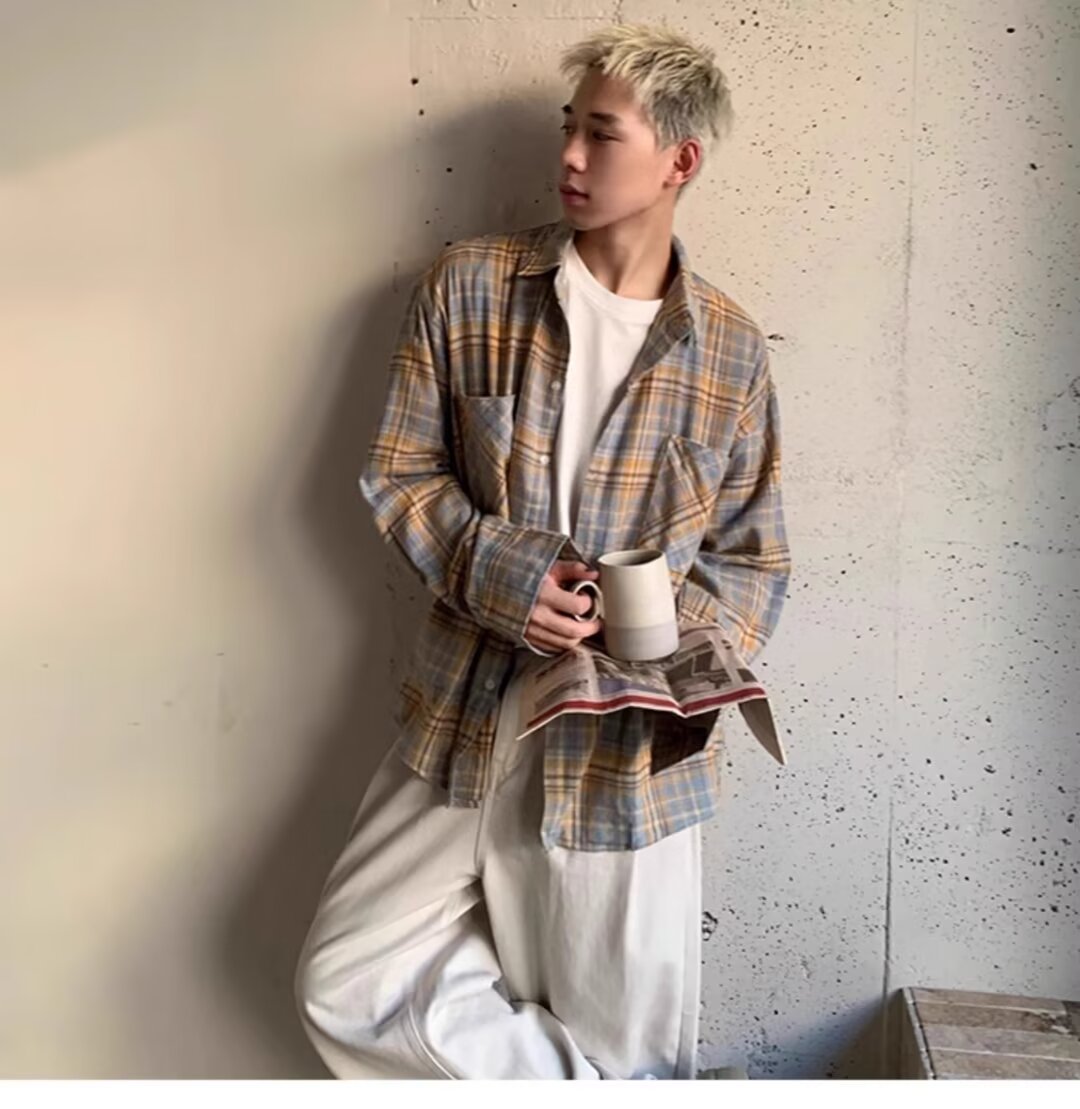 미국 복고풍 격자 무늬 셔츠 남자 봄과 가을 느슨한 올 매치 게으른 스타일 긴 소매 격자 무늬 셔츠 올 매치 아우터스토어 가기