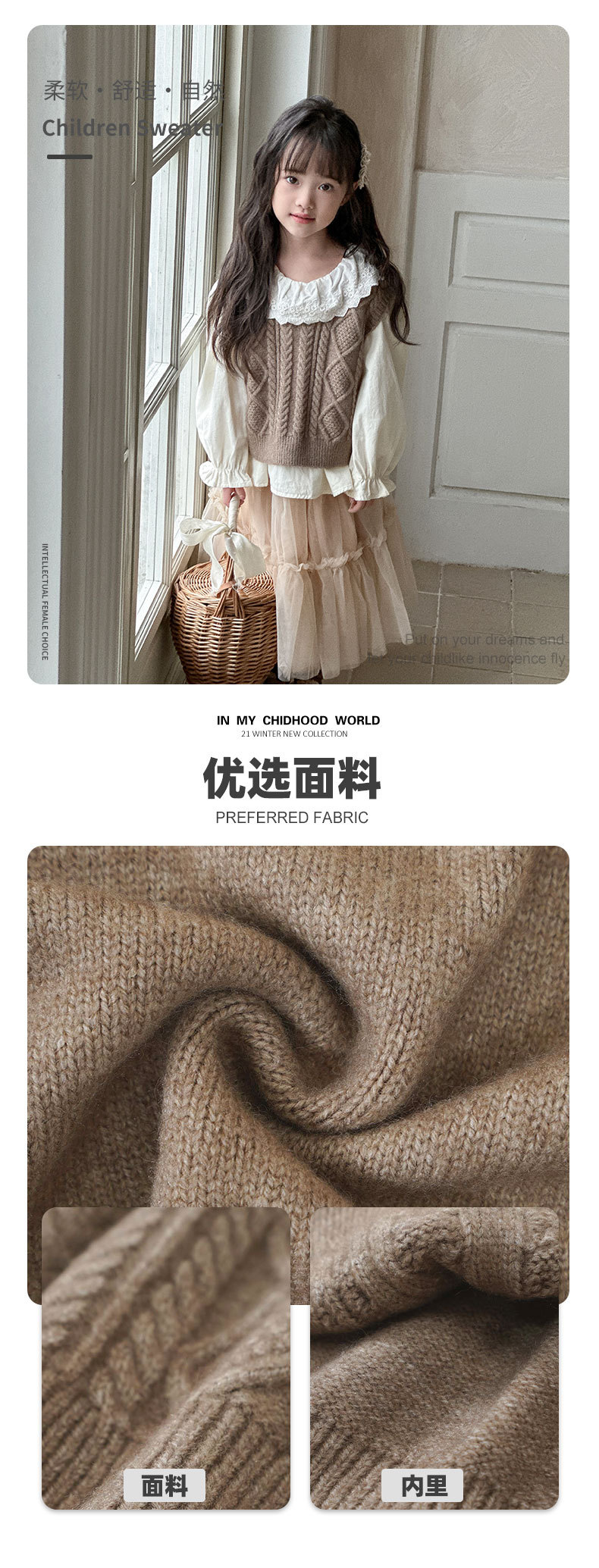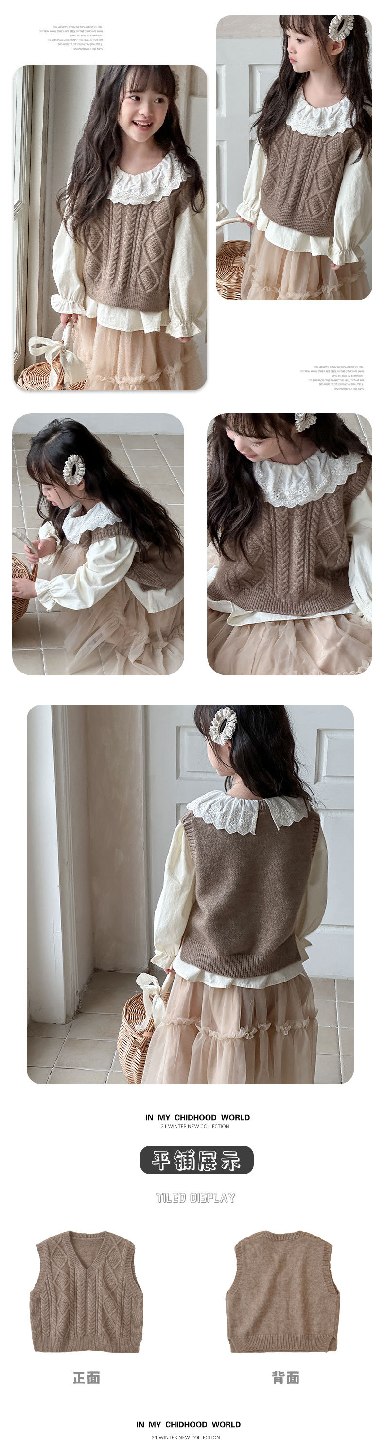 소녀 한국 스타일 아동복 2024 가을 새 도착 웨스턴 스타일 허리 코트 어린이 가을 탑 어린이 니트 조끼스토어 가기