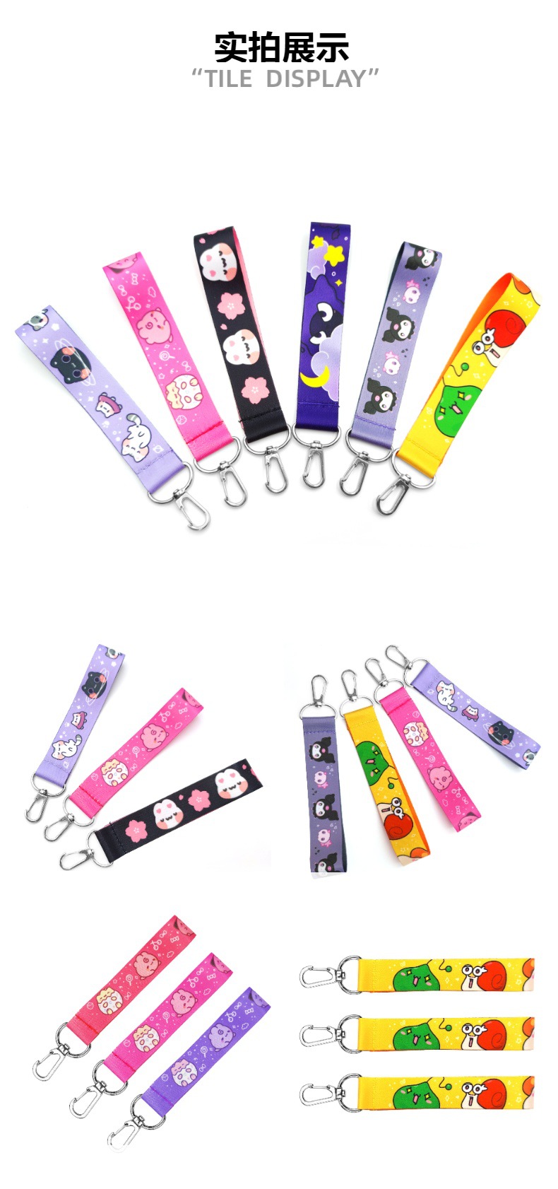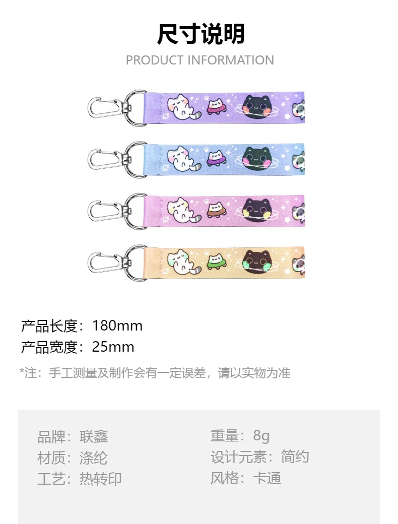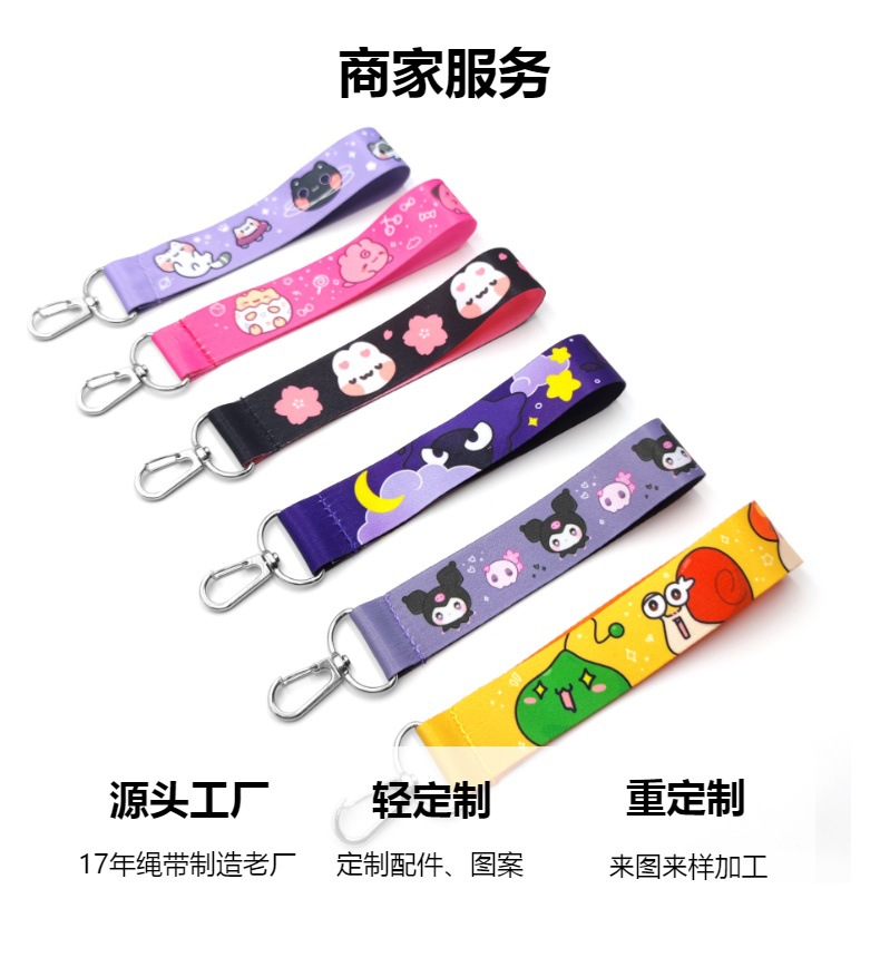폴리에스터 짧은 끈 열전사 인쇄 만화 손목 휴대폰 열쇠고리 작업증 손목 끈 맞춤형 끈 신분증