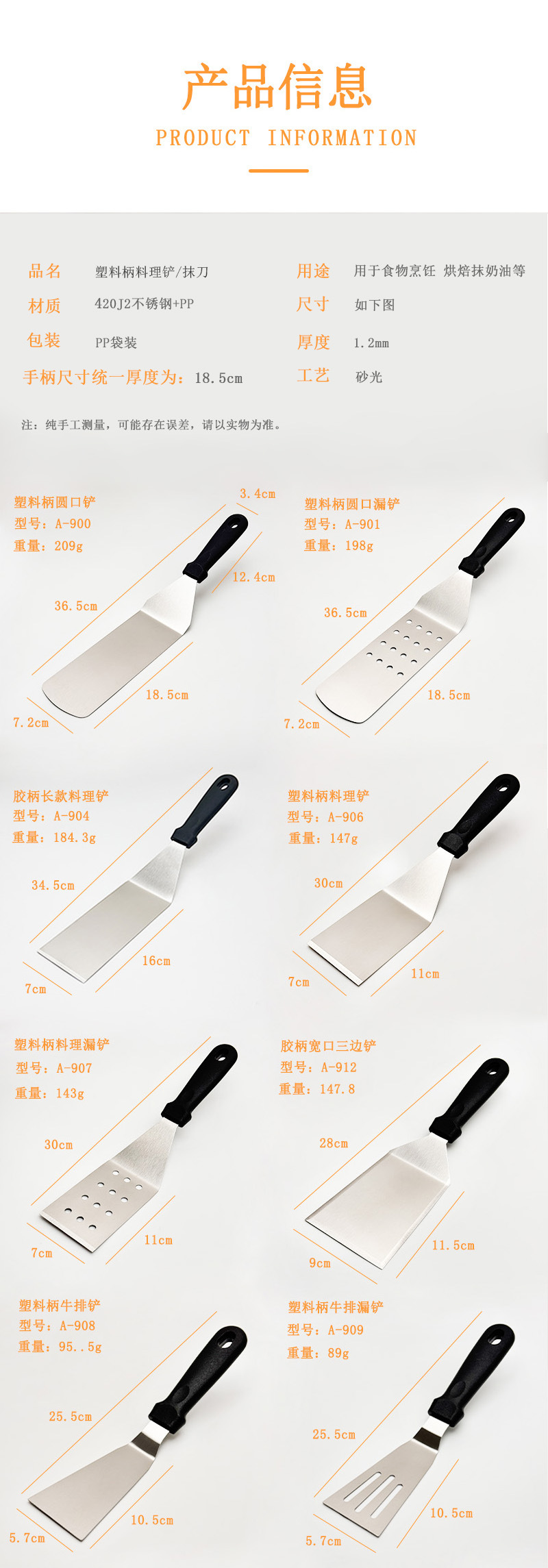 플라스틱 손잡이 스테인레스 스틸 프라이팬 삽 철판 삽 상업 요리 핸드 헬드 케이크 아이스 삽 퍼티 나이프 주방 도구
