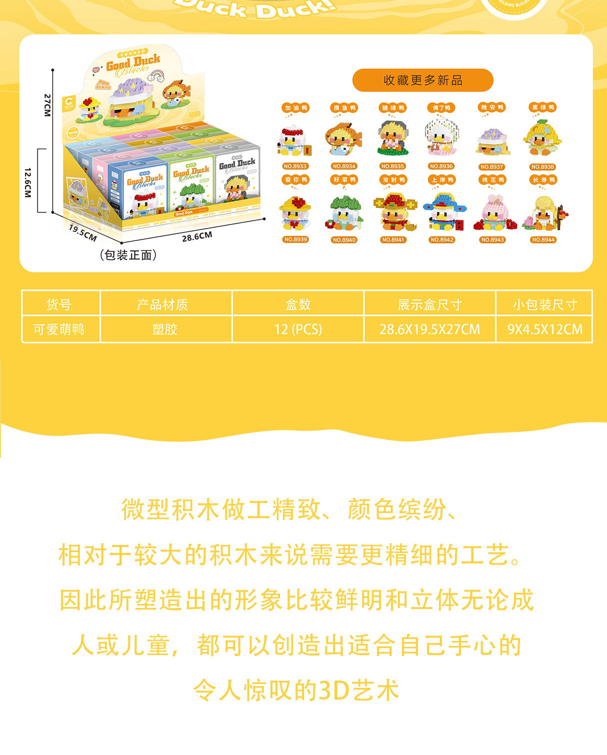 Chao Le Chuang 마이크로 입자 조립 빌딩 블록 8933-8944 해피 덕 시리즈 소녀 장난감 계단 크로스 테두리스토어 가기