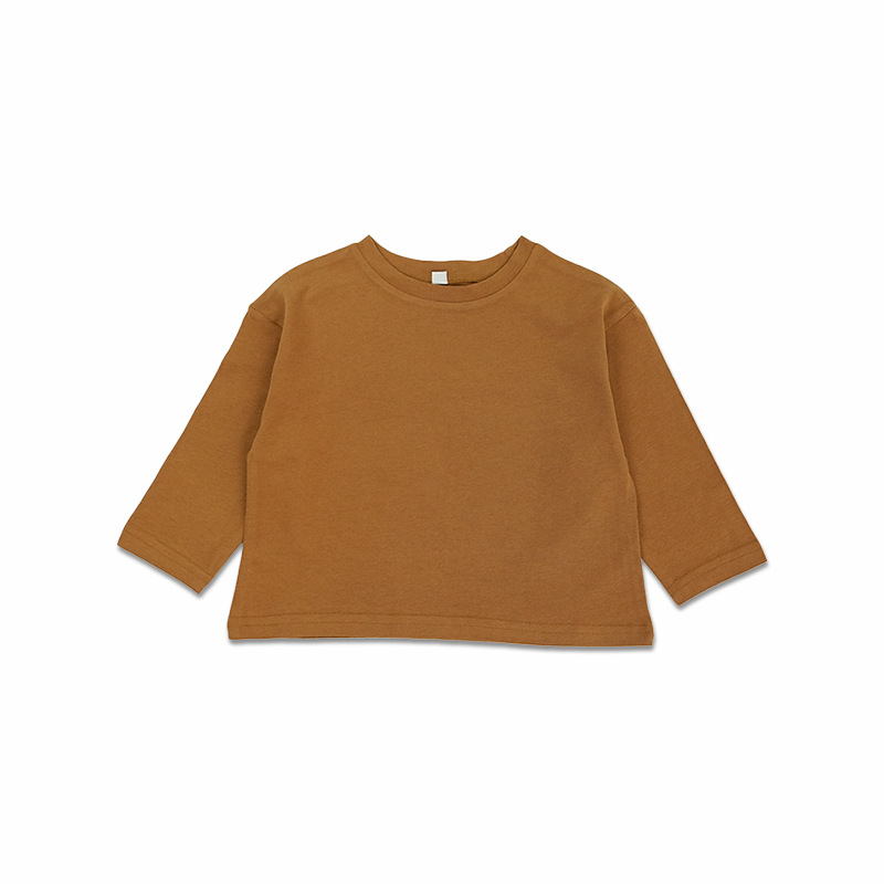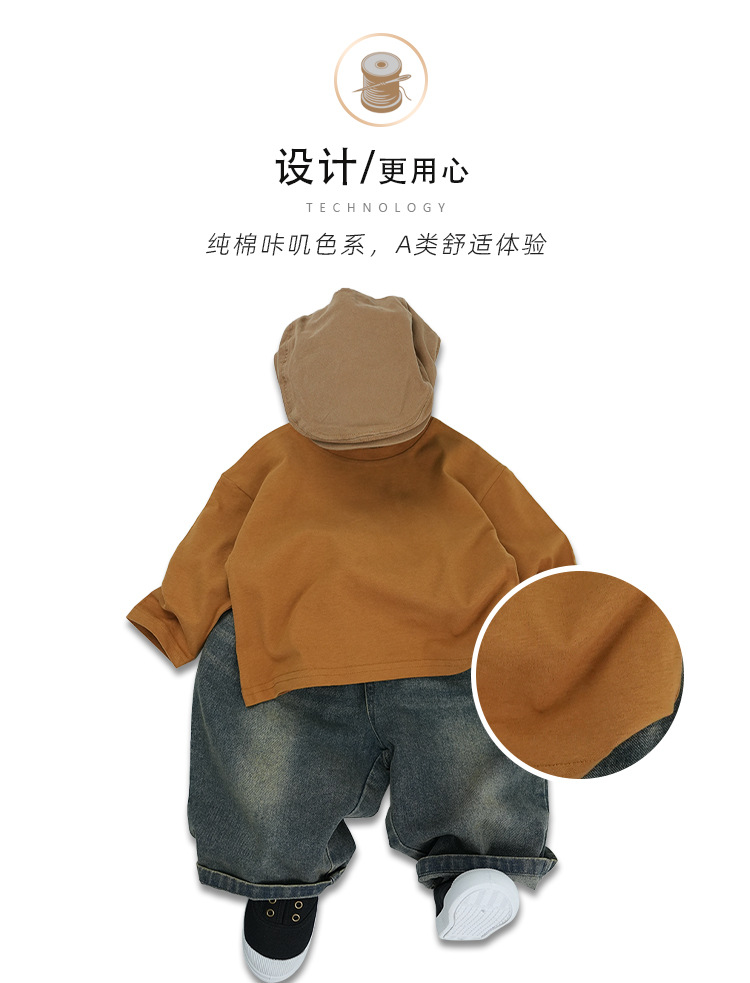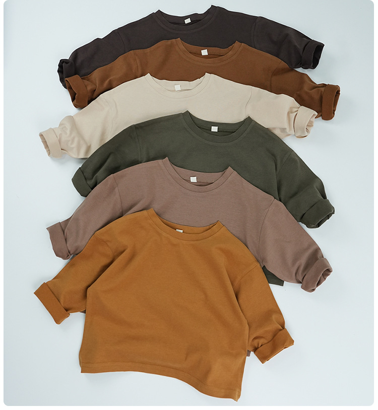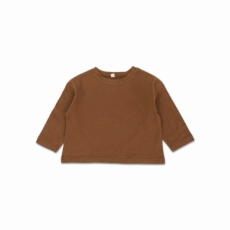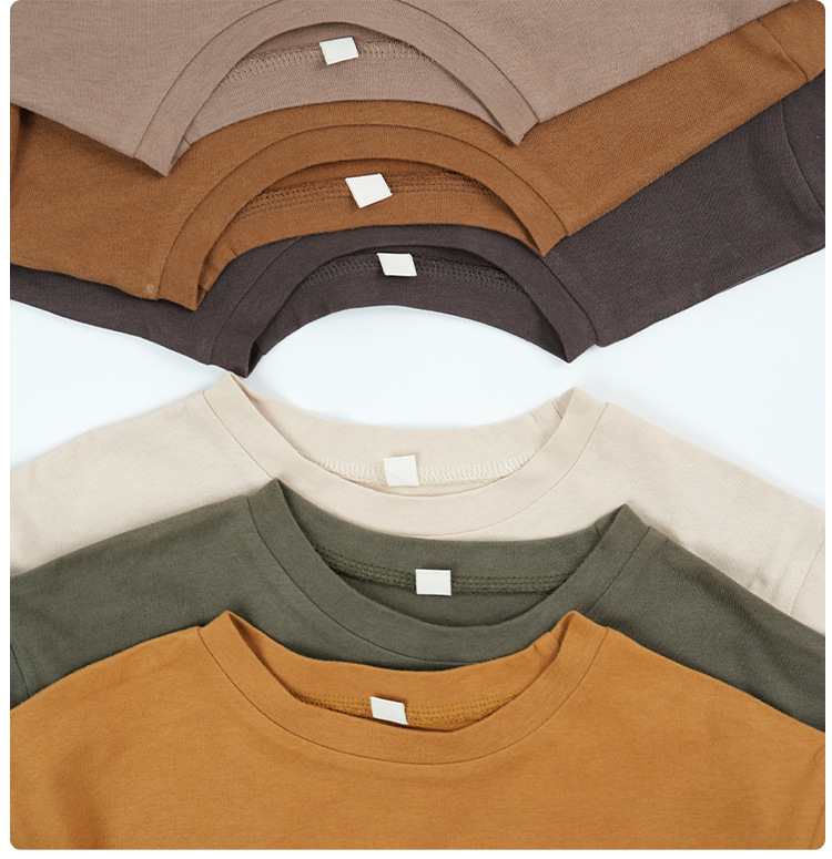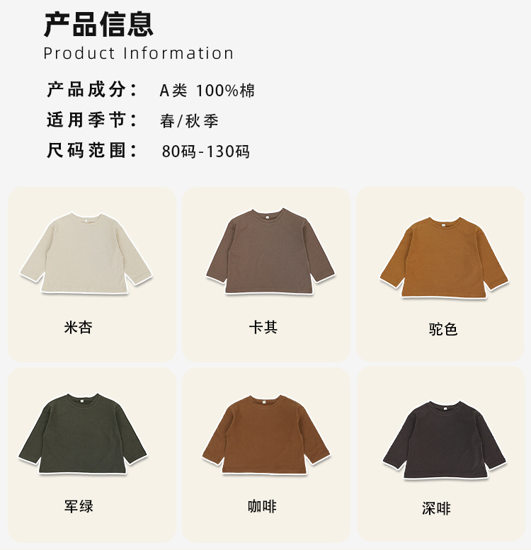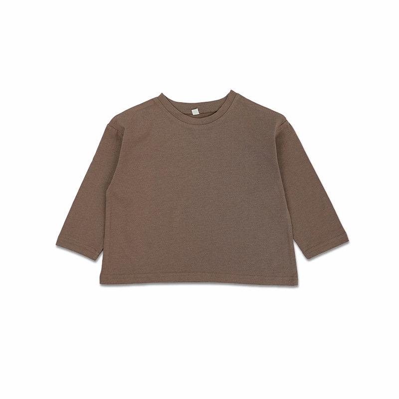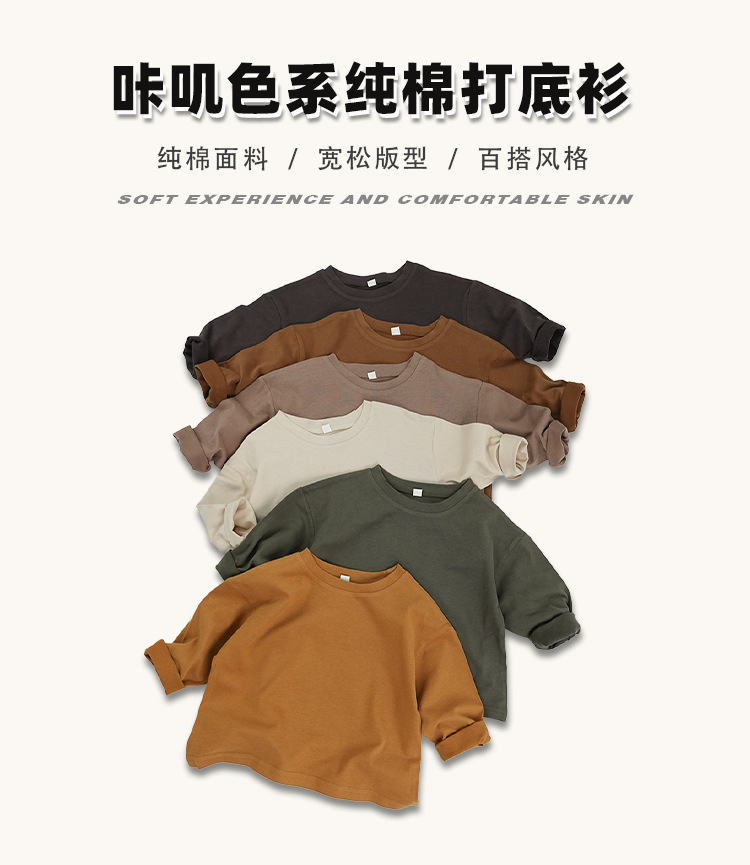 봄에 다양하게 활용 가능~ 남아 여아 순면 긴팔 티셔츠 아동 단색 이너웨어 중소아 카키색 캐주얼 상의