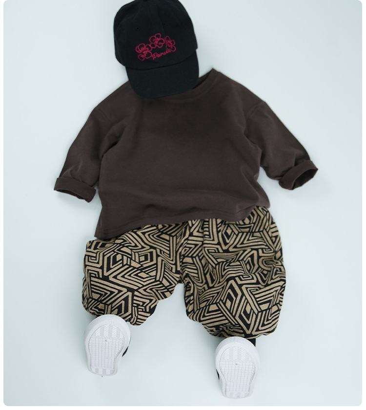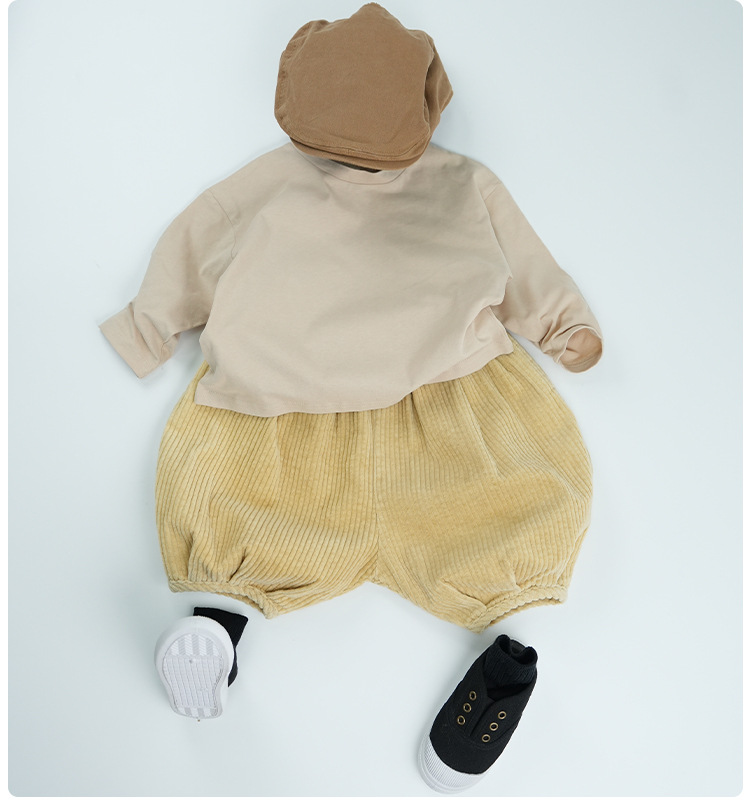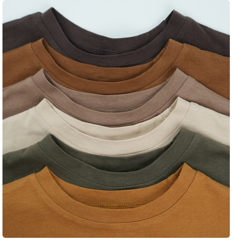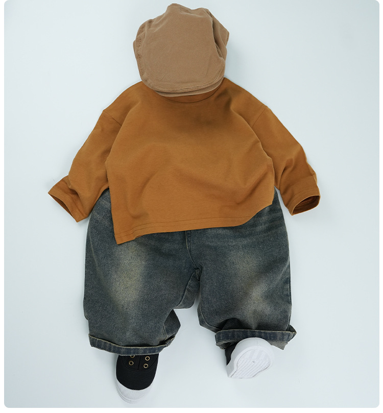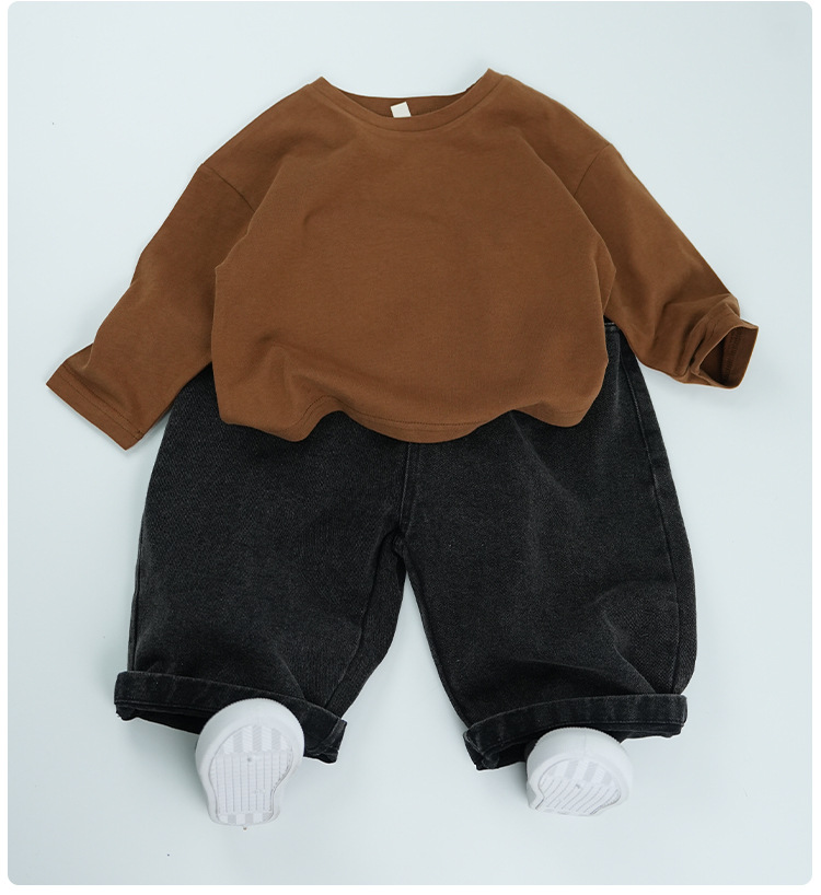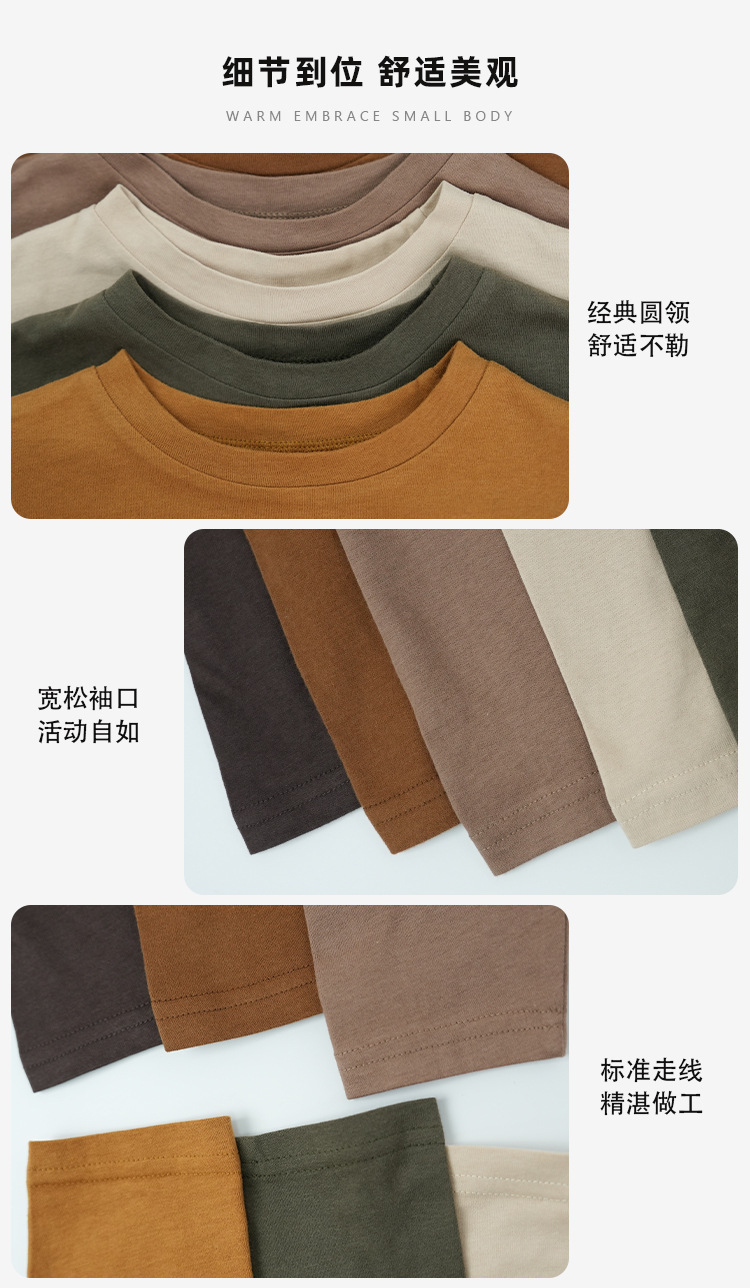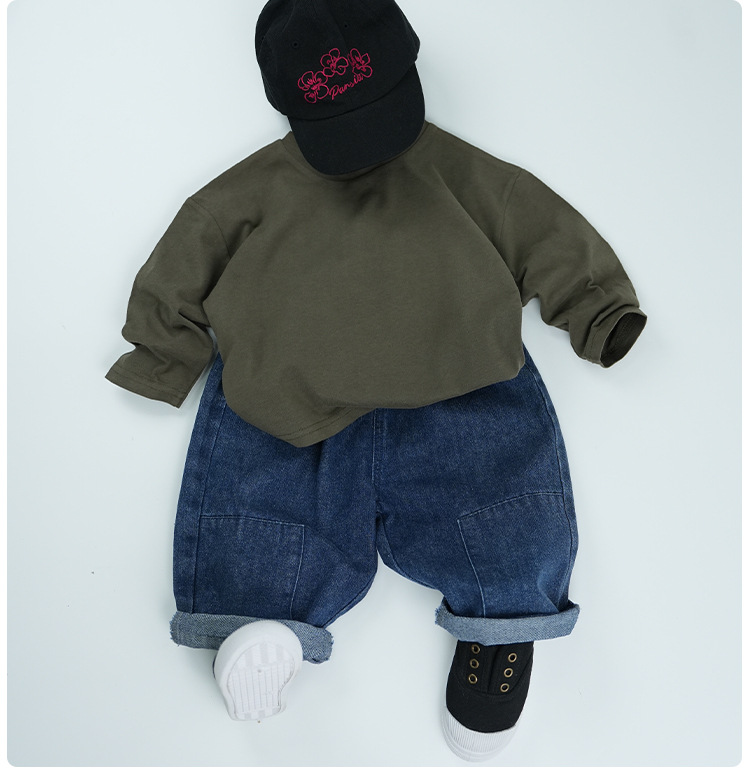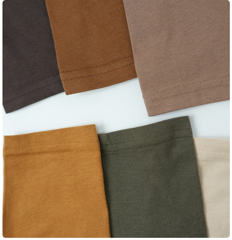 봄에 다양하게 활용 가능~ 남아 여아 순면 긴팔 티셔츠 아동 단색 이너웨어 중소아 카키색 캐주얼 상의
