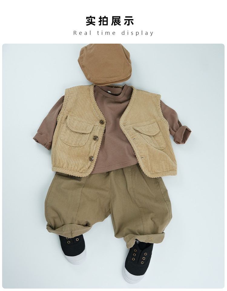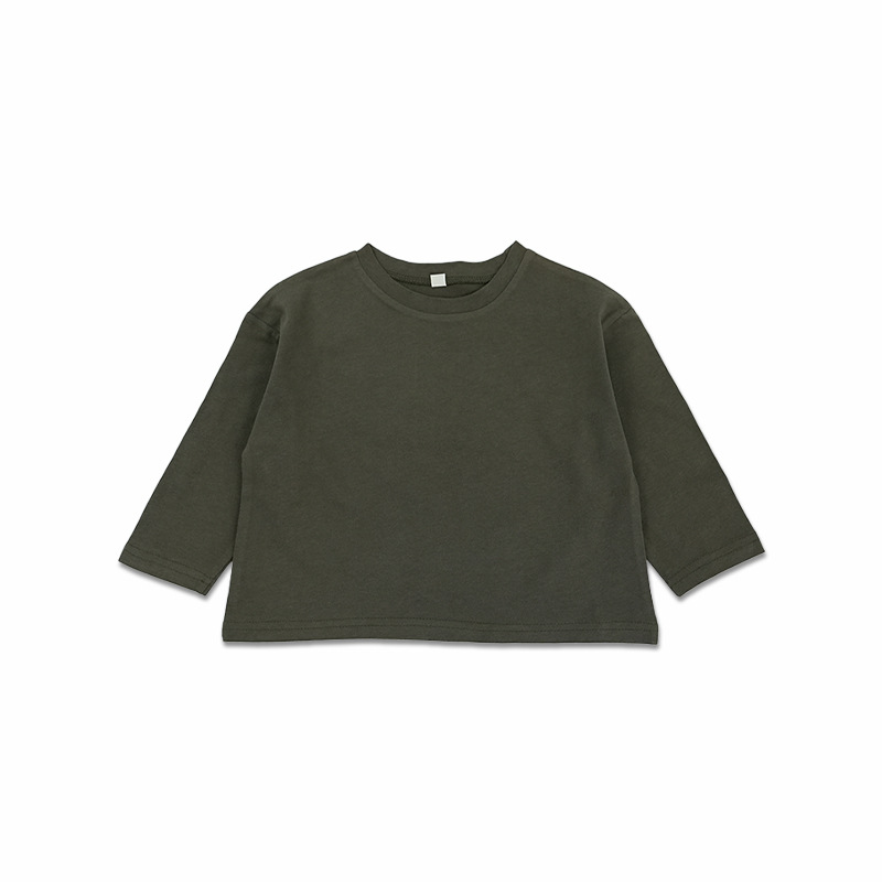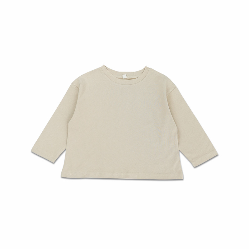봄에 다양하게 활용 가능~ 남아 여아 순면 긴팔 티셔츠 아동 단색 이너웨어 중소아 카키색 캐주얼 상의스토어 가기