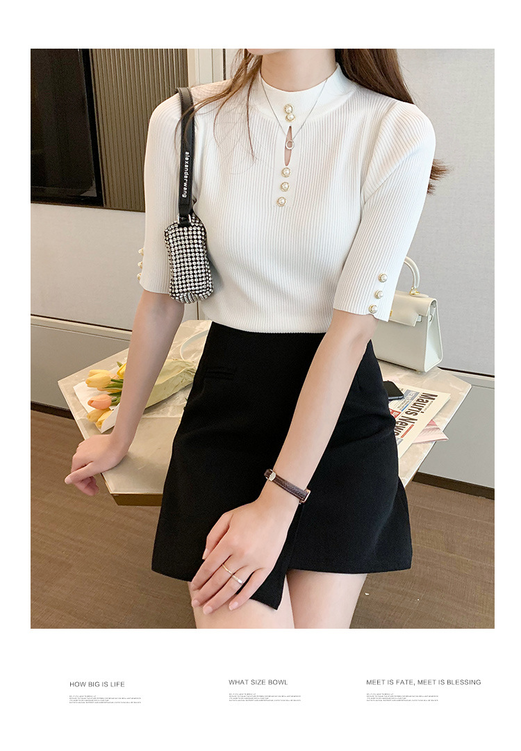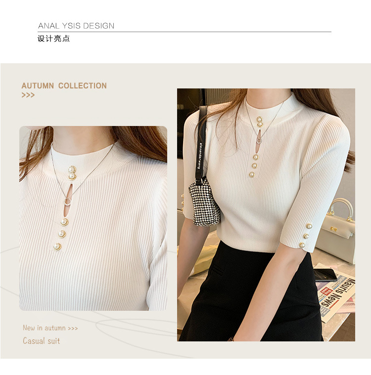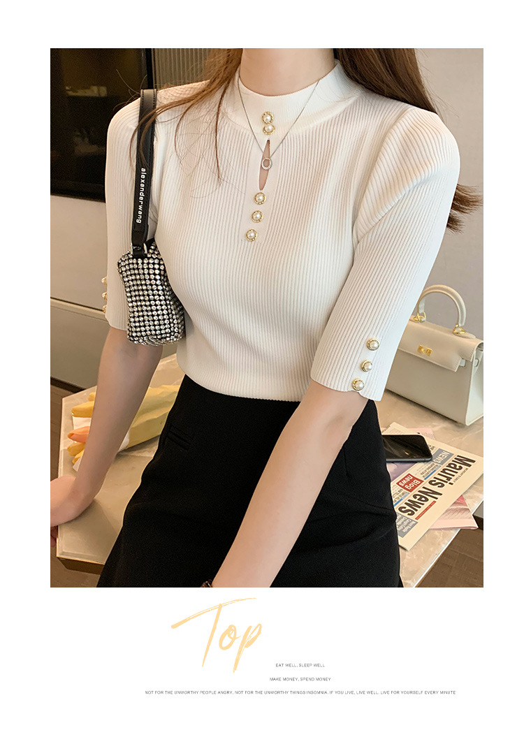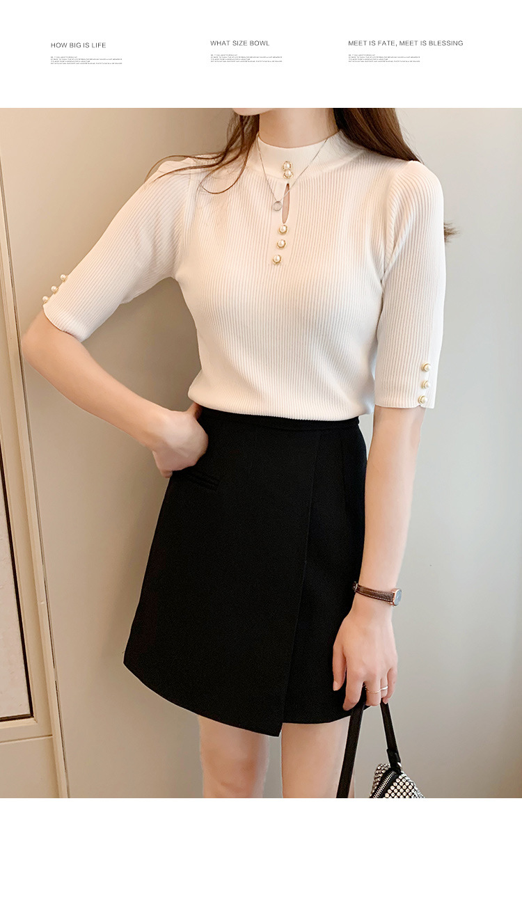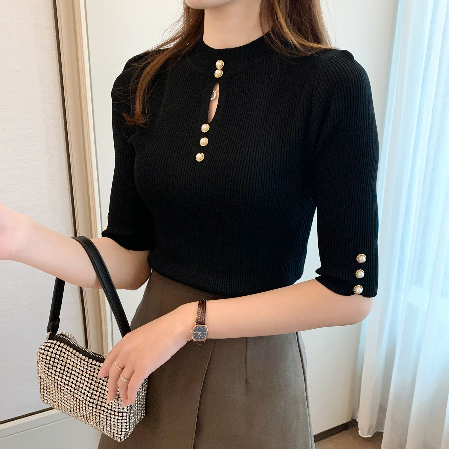 봄과 가을 디자인 센스 틈새 외부 반소매 니트 탑 티셔츠를 입고 여성용 세트 내부 얇은 미드 슬리브베이스 셔츠스토어 가기