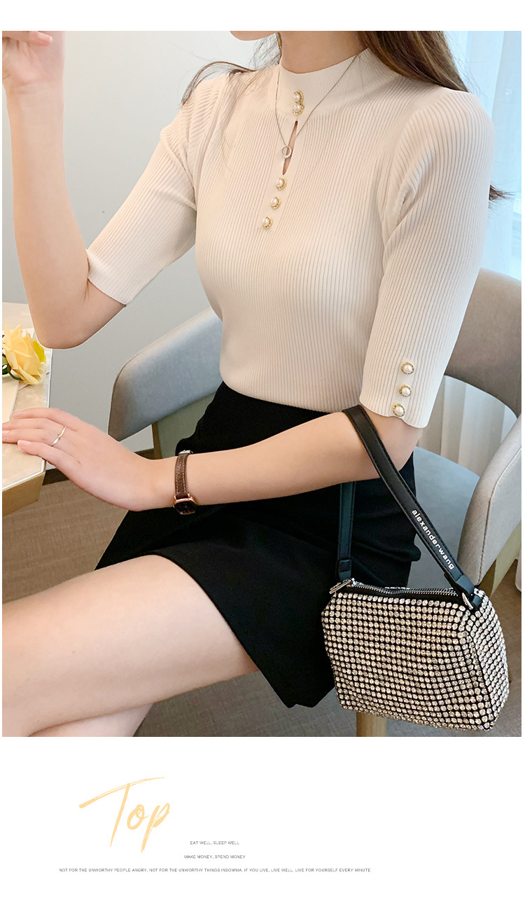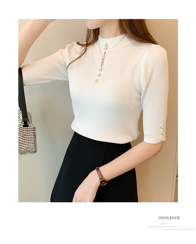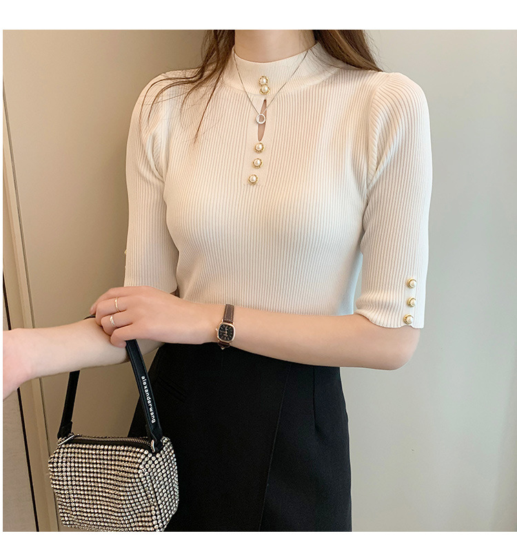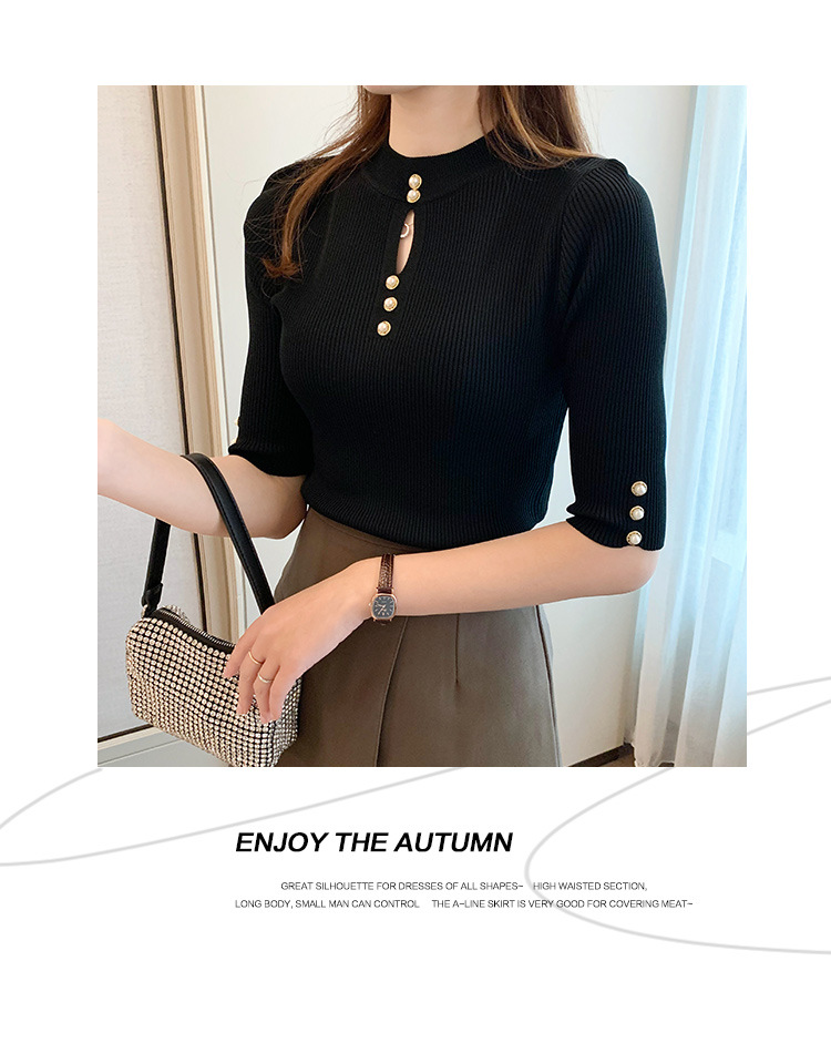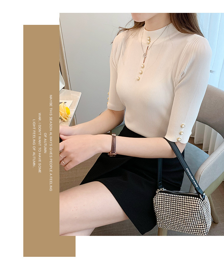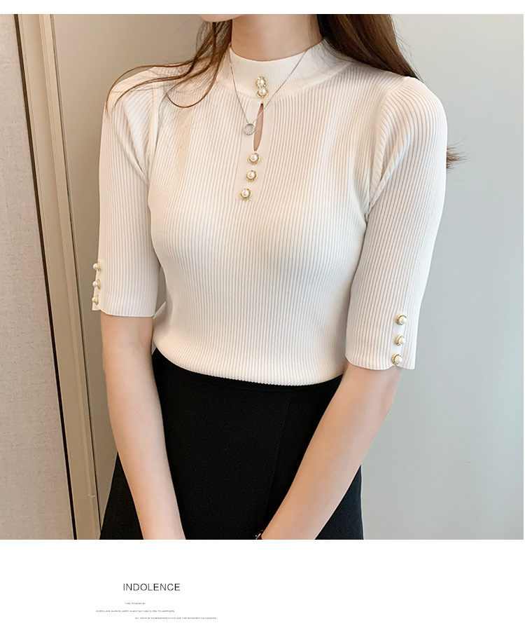 봄과 가을 디자인 센스 틈새 외부 반소매 니트 탑 티셔츠를 입고 여성용 세트 내부 얇은 미드 슬리브베이스 셔츠스토어 가기