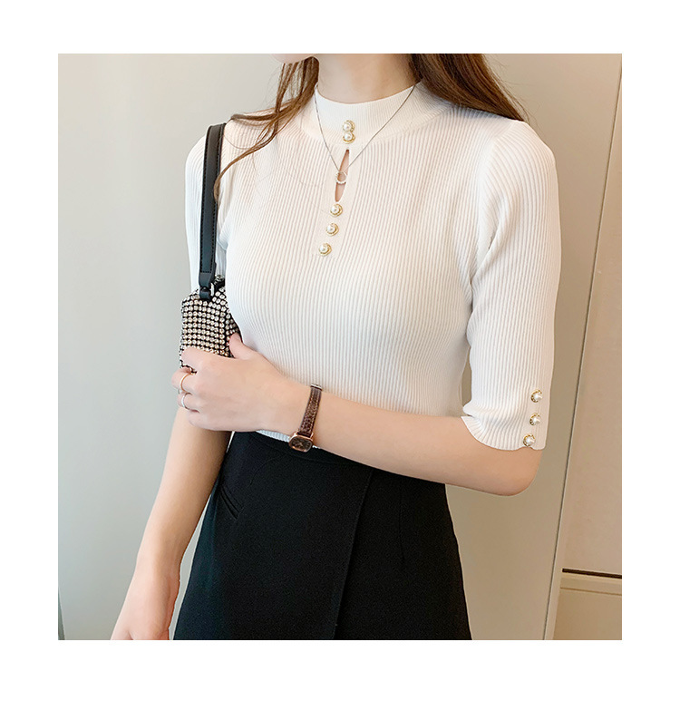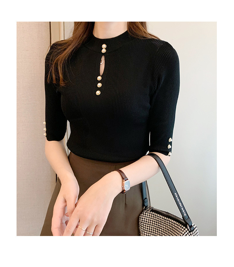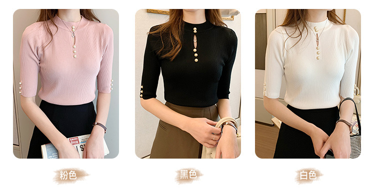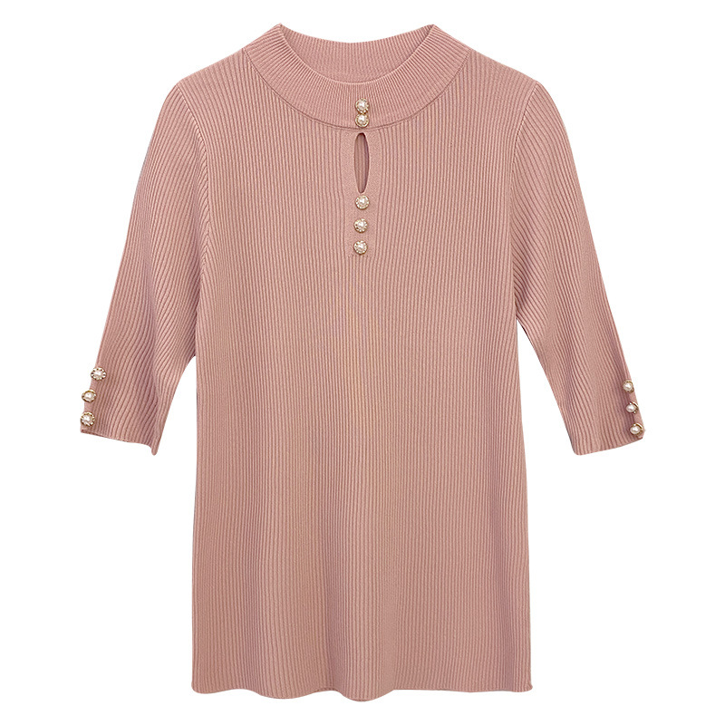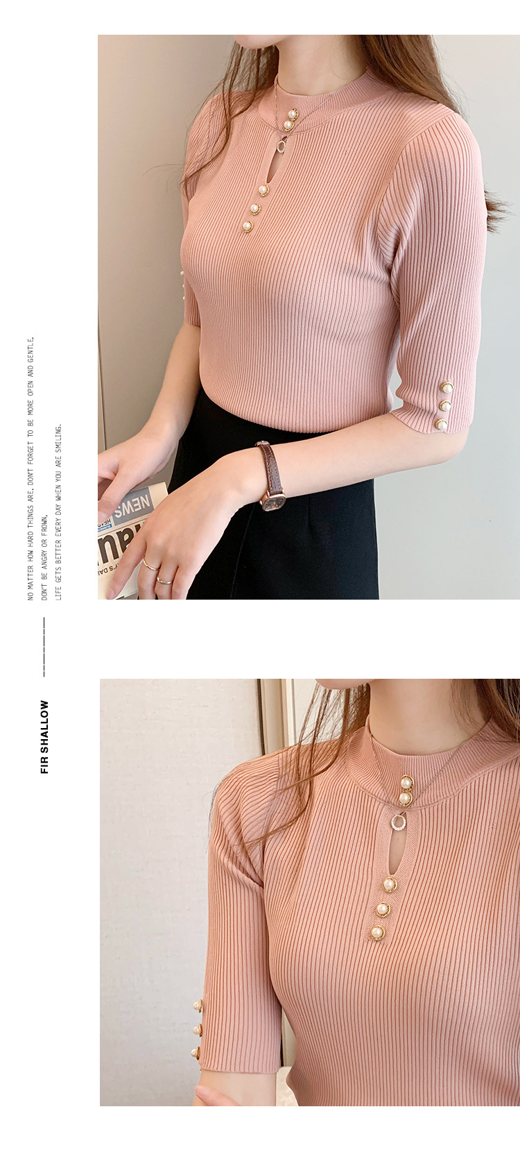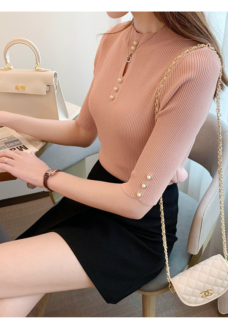 봄과 가을 디자인 센스 틈새 외부 반소매 니트 탑 티셔츠를 입고 여성용 세트 내부 얇은 미드 슬리브베이스 셔츠스토어 가기