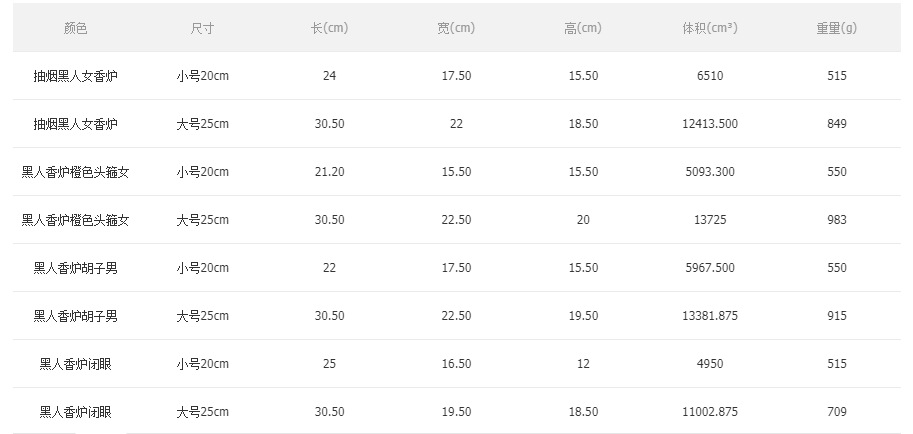 黑人香炉闭眼小号产品尺寸:9*19.5*12.5cm