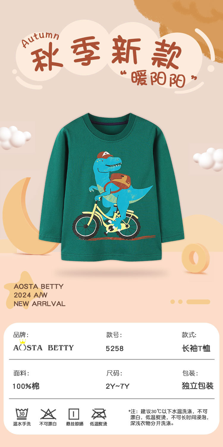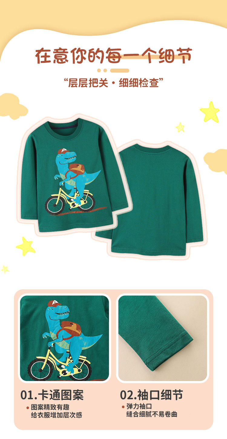 봄과 가을 소년의 긴 소매 티셔츠 유럽과 미국 스타일의 만화 공룡 인쇄 탑 둥근 목 풀오버베이스 셔츠