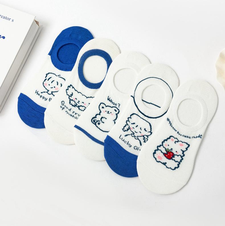 국제판 한국 양말 컬렉션, 만화 무지 양말, 미끄럼 방지 실리콘 보트 양말, 얕은 양말, 200N 면 양말
