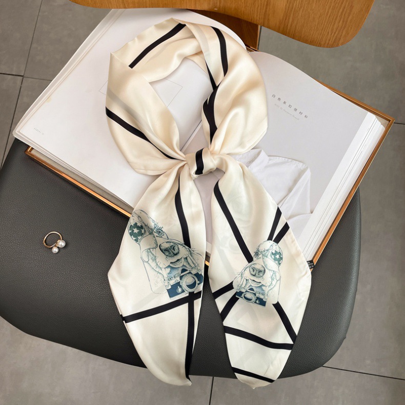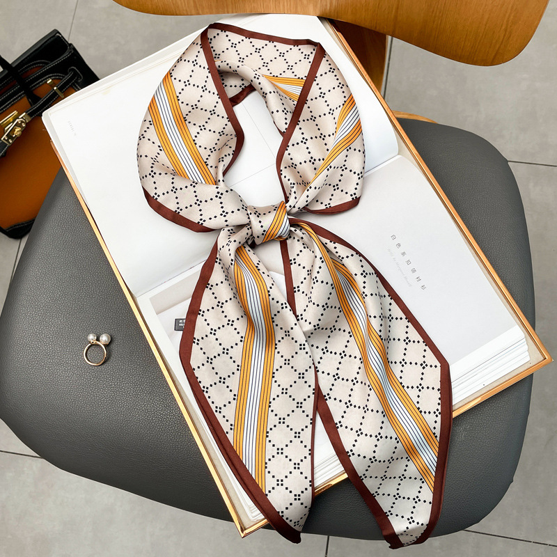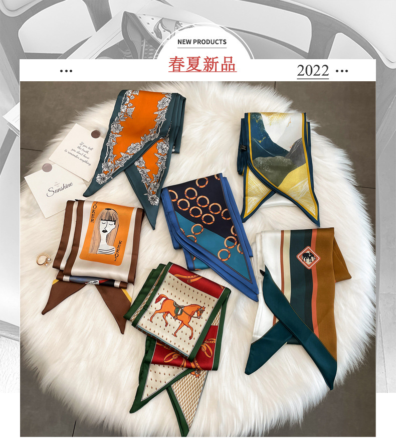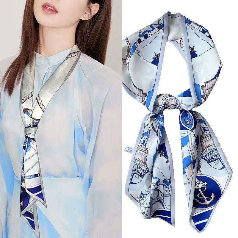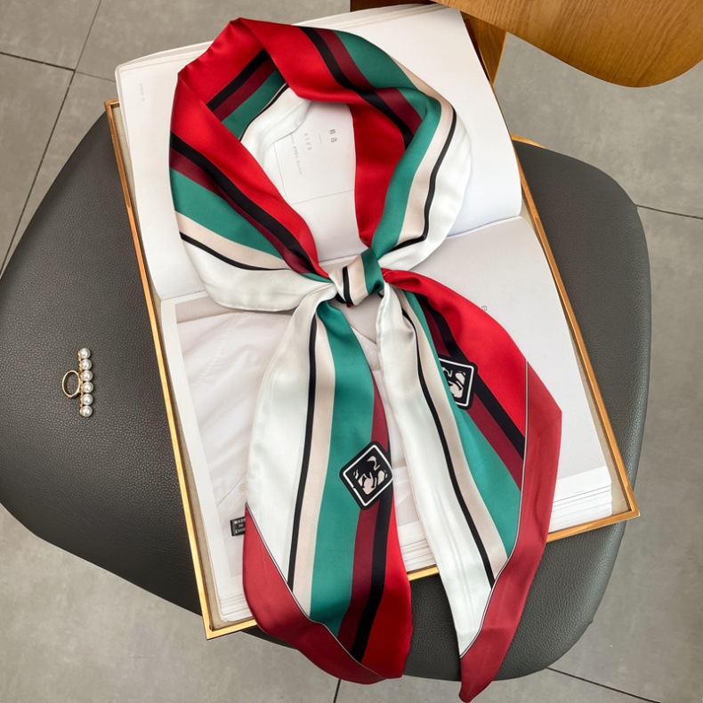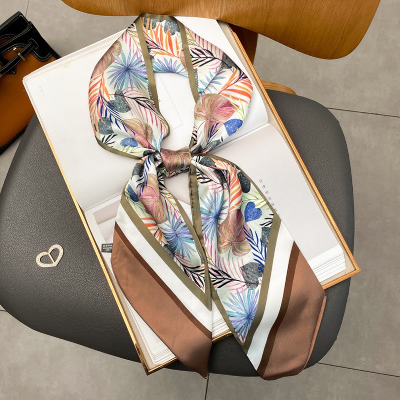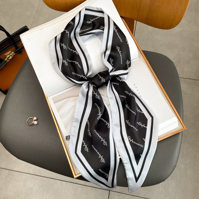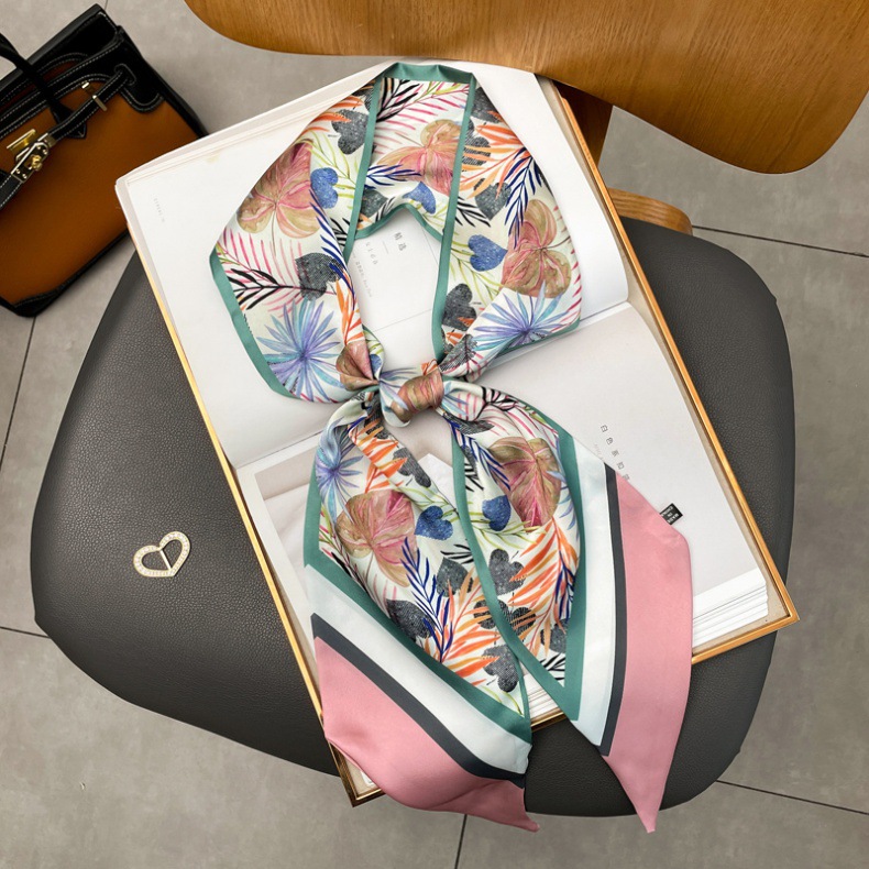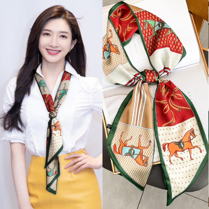 실크 스카프 작은 긴 여성의 여름 새로운 헤어 벨트 벨트 넥타이 가방 스카프 일치하는 셔츠 2024 폭발 스카프스토어 가기