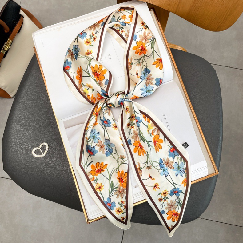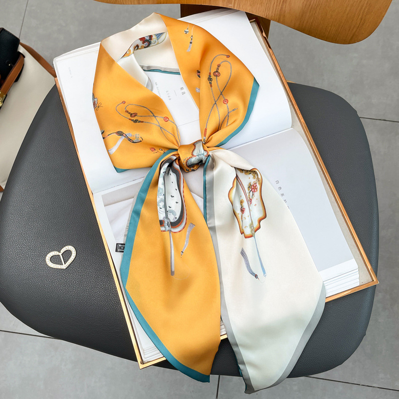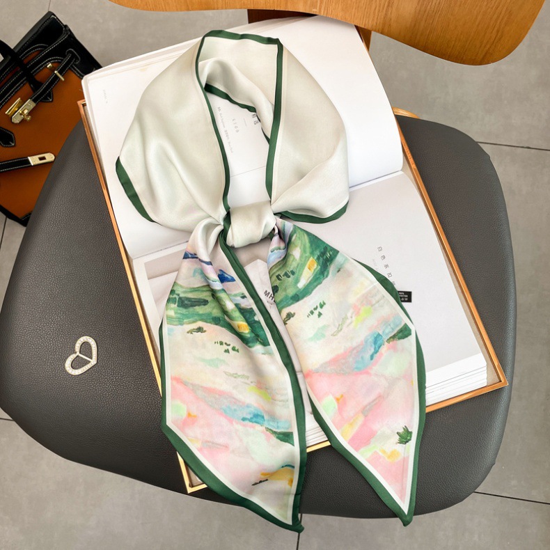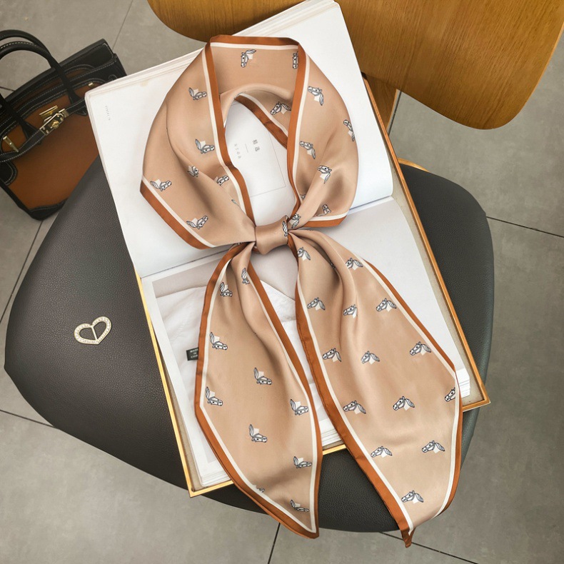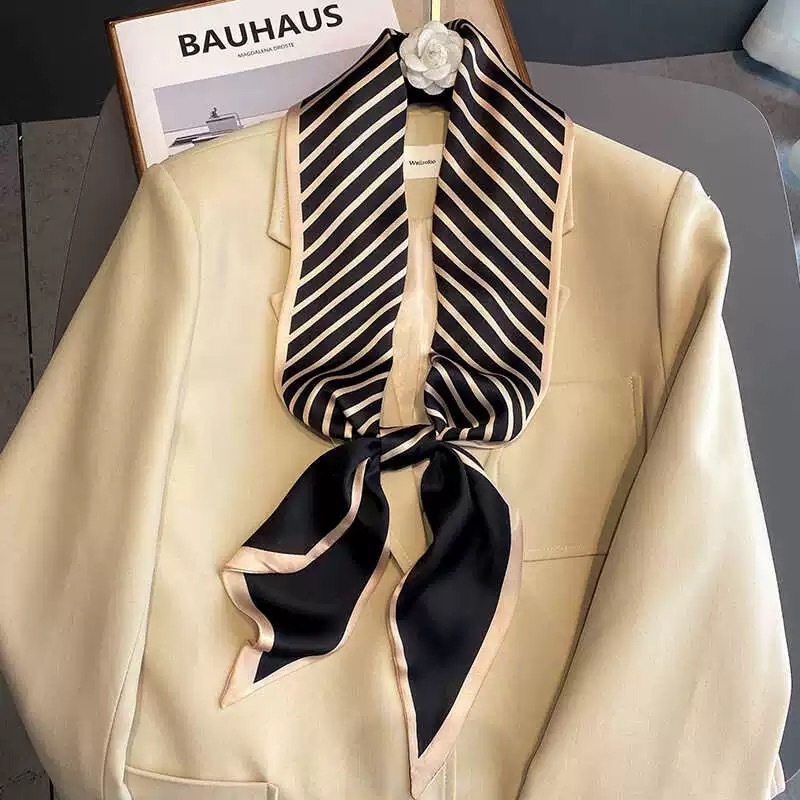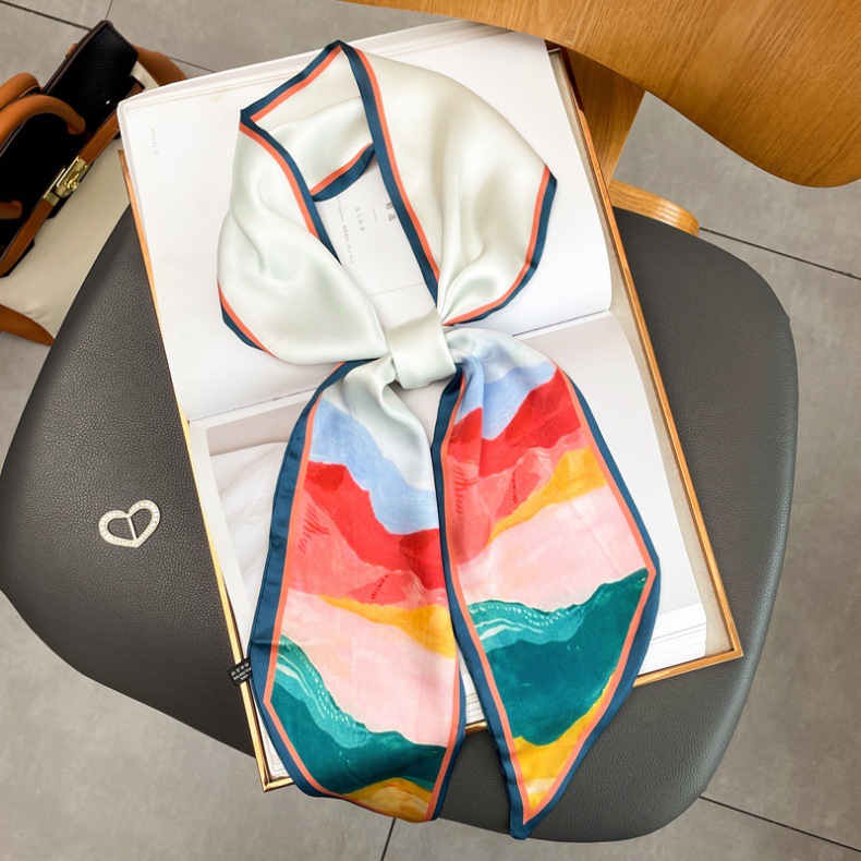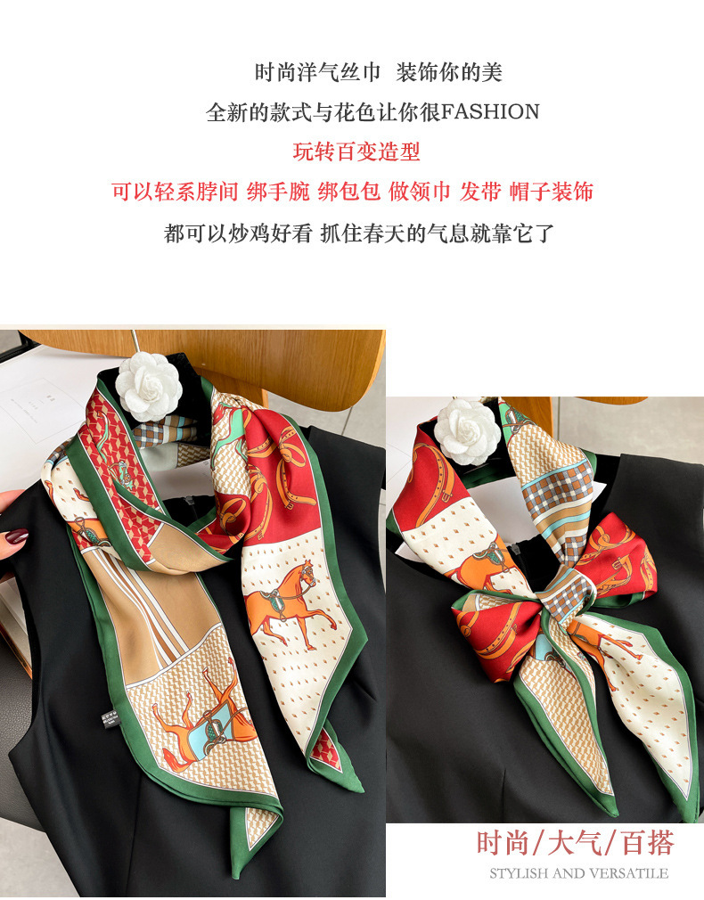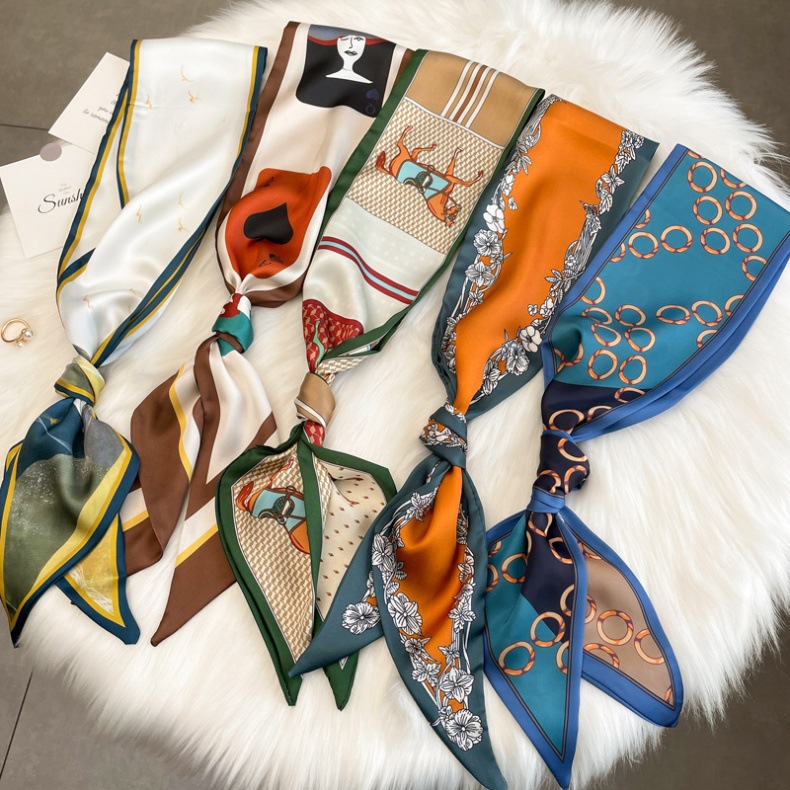 실크 스카프 작은 긴 여성의 여름 새로운 헤어 벨트 벨트 넥타이 가방 스카프 일치하는 셔츠 2024 폭발 스카프스토어 가기