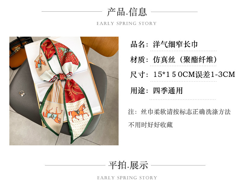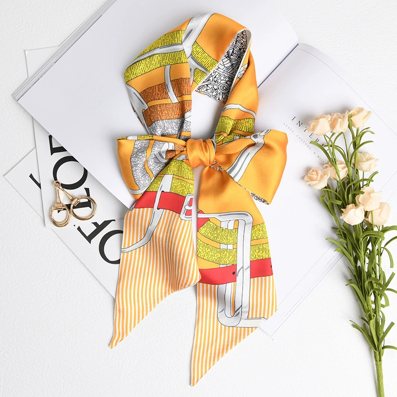 실크 스카프 작은 긴 여성의 여름 새로운 헤어 벨트 벨트 넥타이 가방 스카프 일치하는 셔츠 2024 폭발 스카프