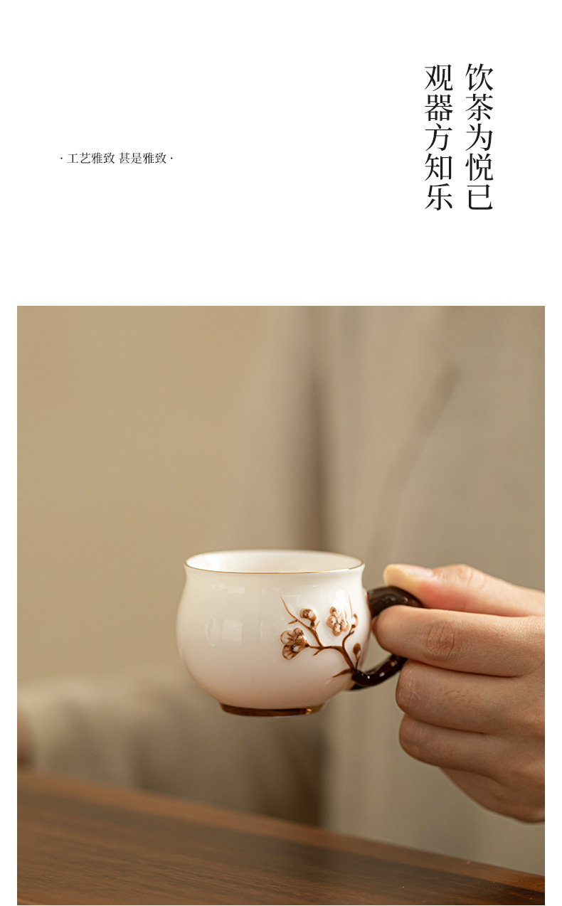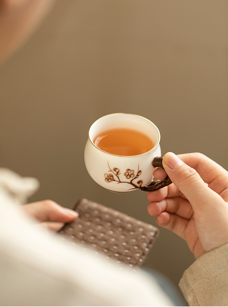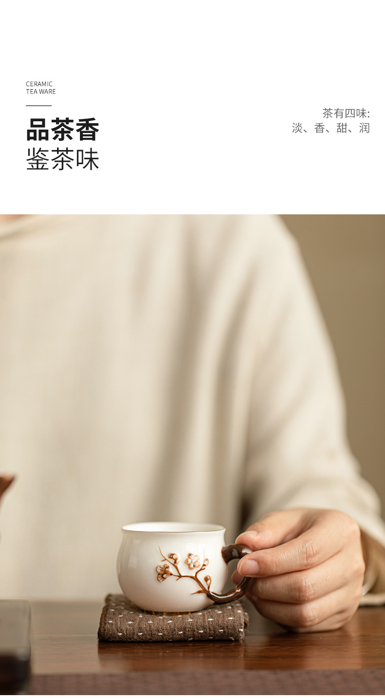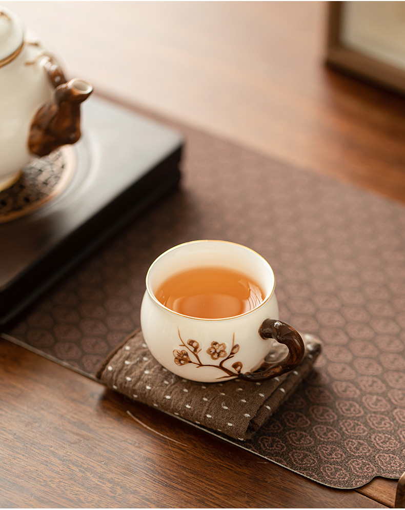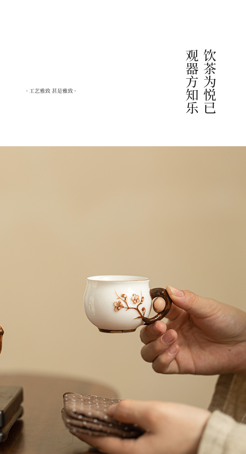 Dehua 차 세트 수트 옥 수제 꽃 차 컵 세라믹 차 세트 마스터 컵 차 시음 컵 커피 컵 쿵푸 차 세트스토어 가기